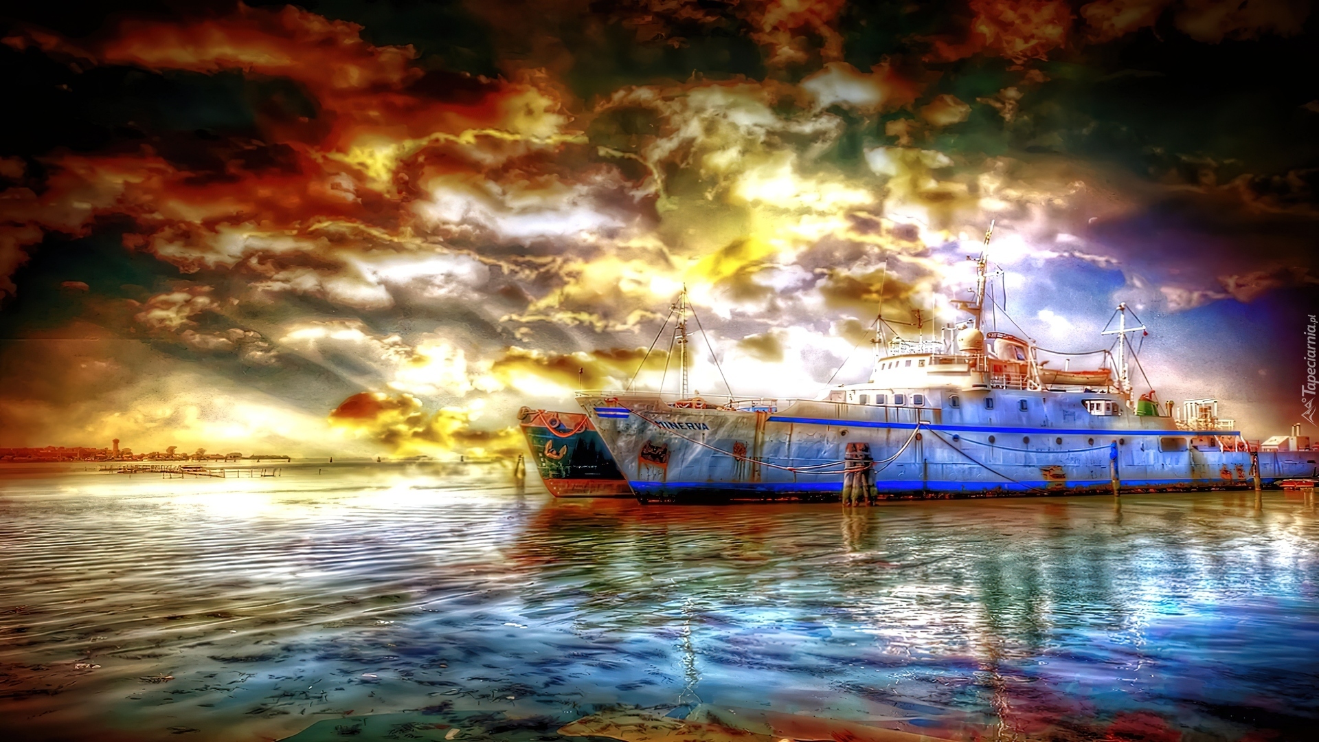 Edytor tapety: Statek, Morze, Chmury