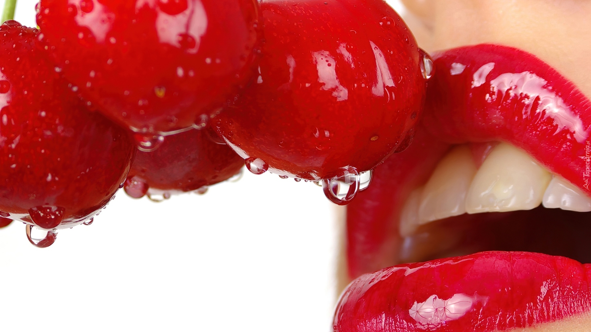 Edytor tapety: Namiętne, Usta, Wiśnie