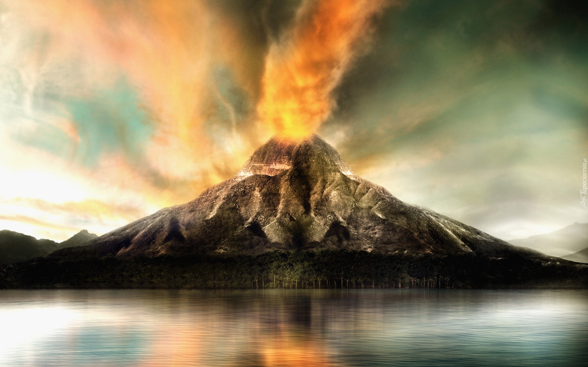Edytor tapety: Wulkan, Wybuch, Morze