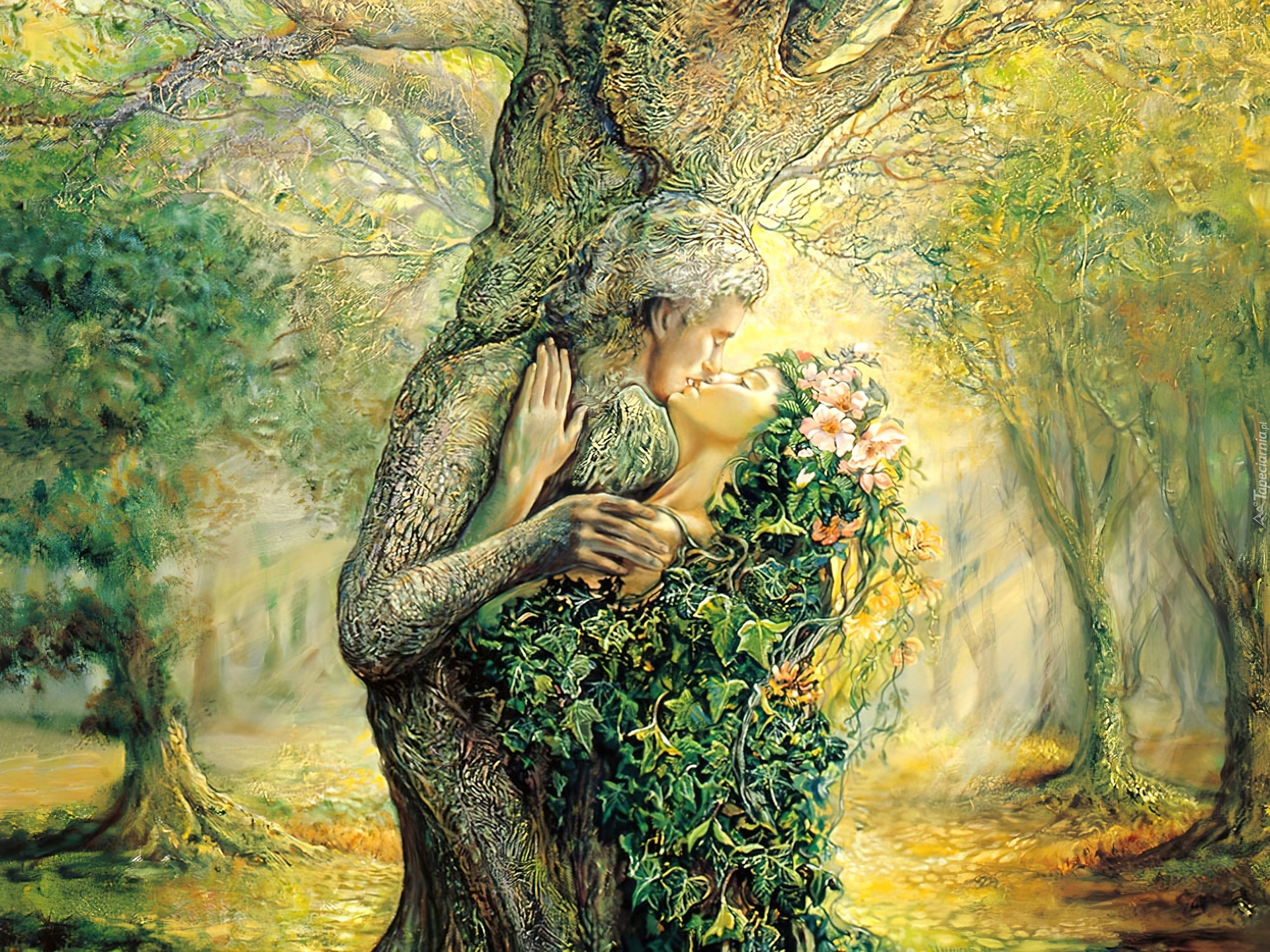 Edytor tapety: Wiosna, Kobieta, Mężczyzna, Drzewa, Pocałunek, Josephine Wall