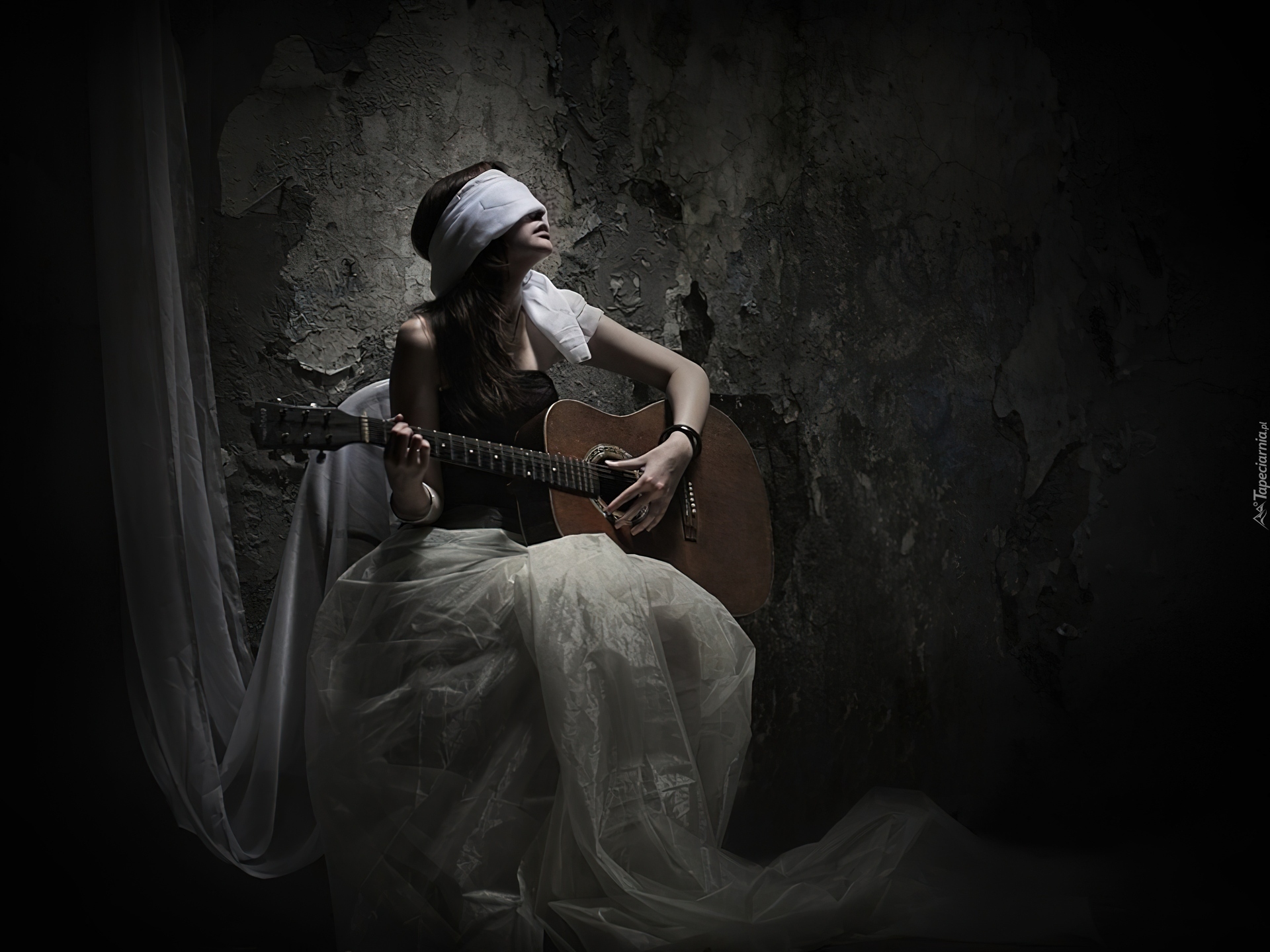 Edytor tapety: Gitara, Mrok, Kobieta