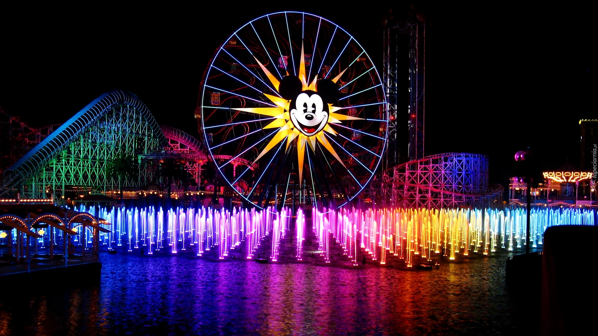 Edytor tapety: Wesołe, Miasteczko, Kolorowe, Fontanny