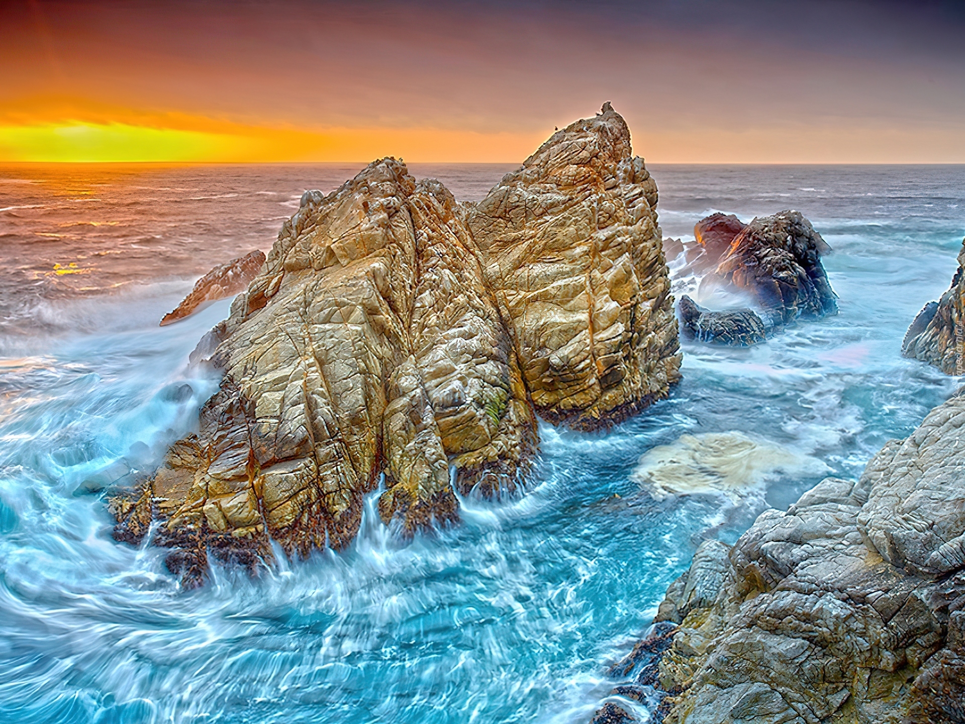 Edytor tapety: Skały, Morze, Zachód, Słońca