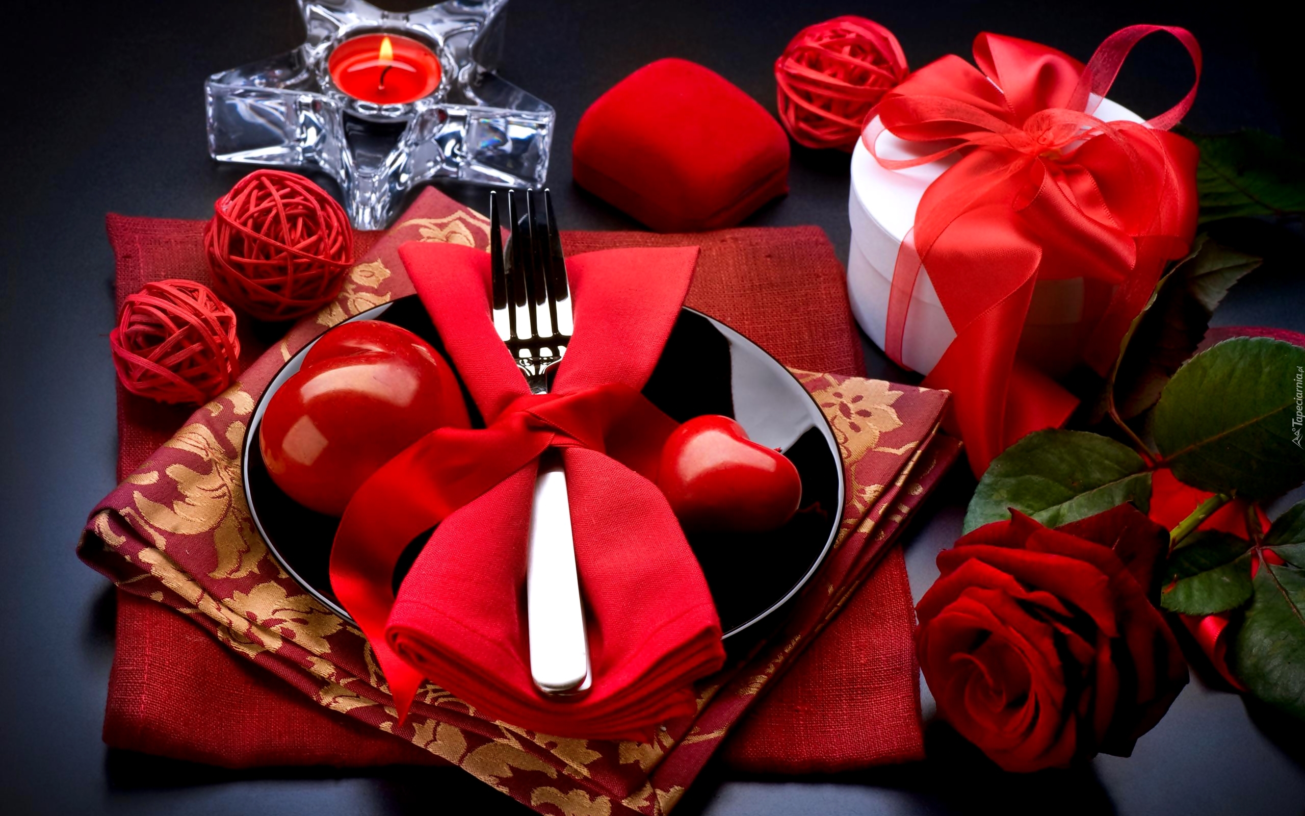 Edytor tapety: Róża, Świeca, Prezent, Walentynkowa, Kolacja, Kompozycja