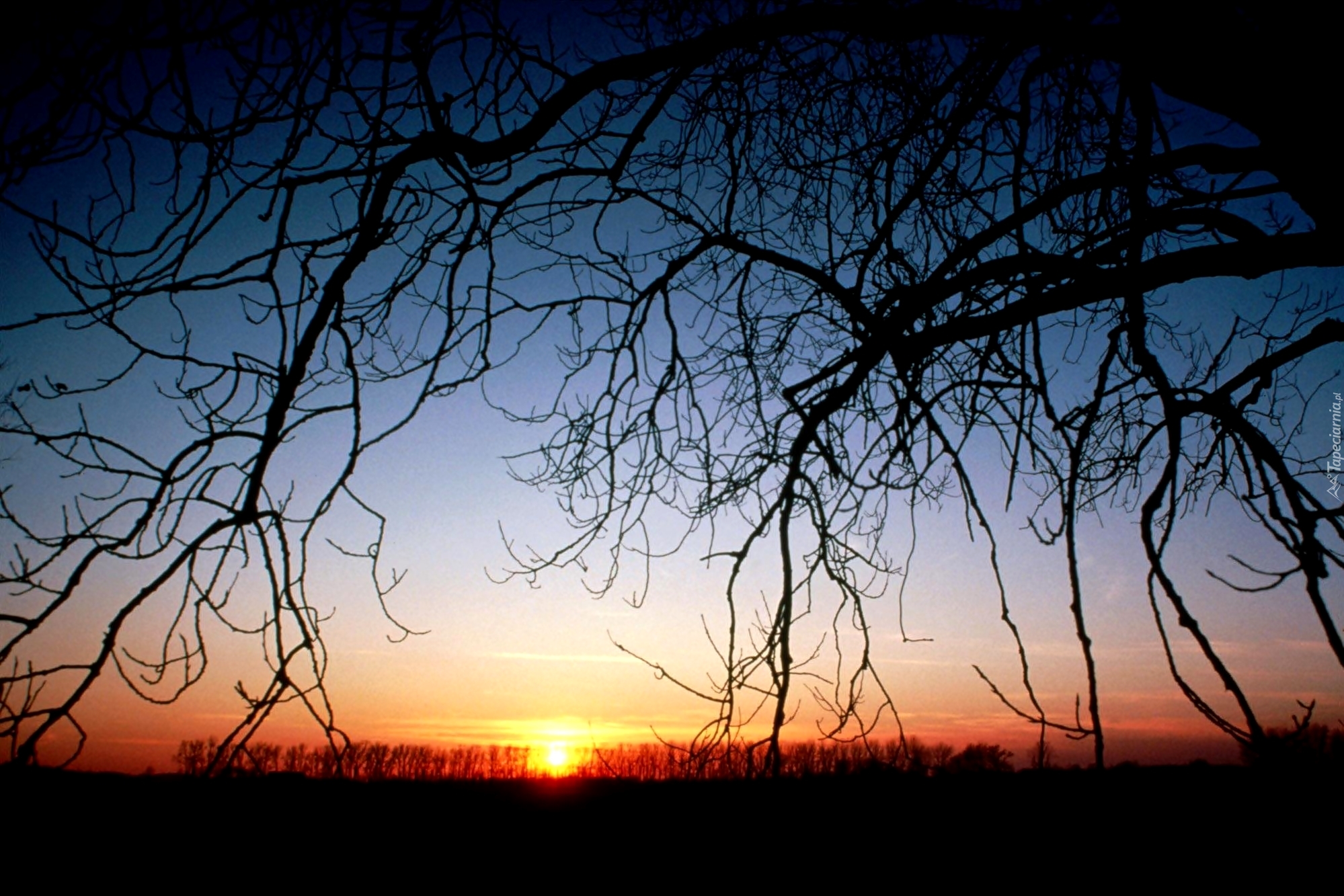 Edytor tapety: Opadające gałęzie, Zachód Słońca