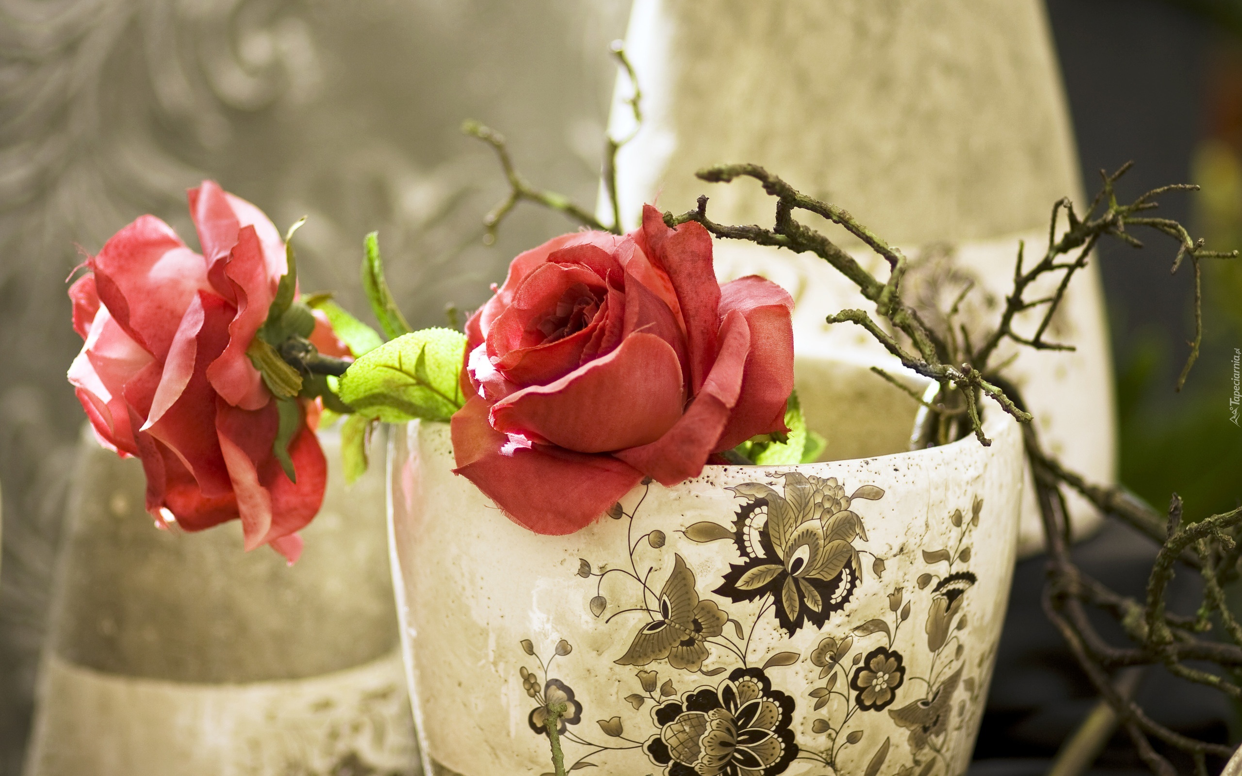 Edytor tapety: Wazon, Czerwone, Róże