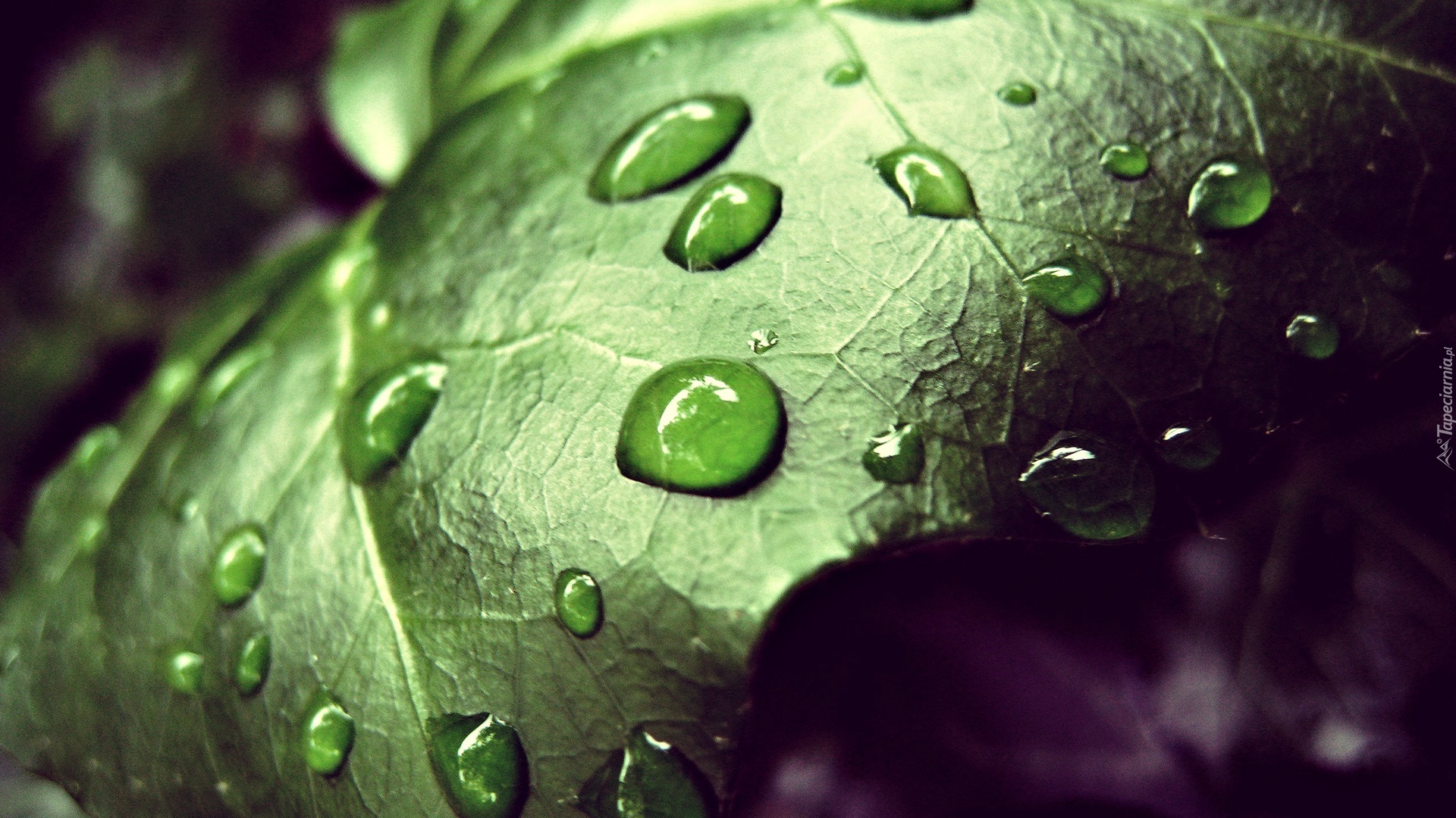 Edytor tapety: Zielony, Liść, Krople, Wody