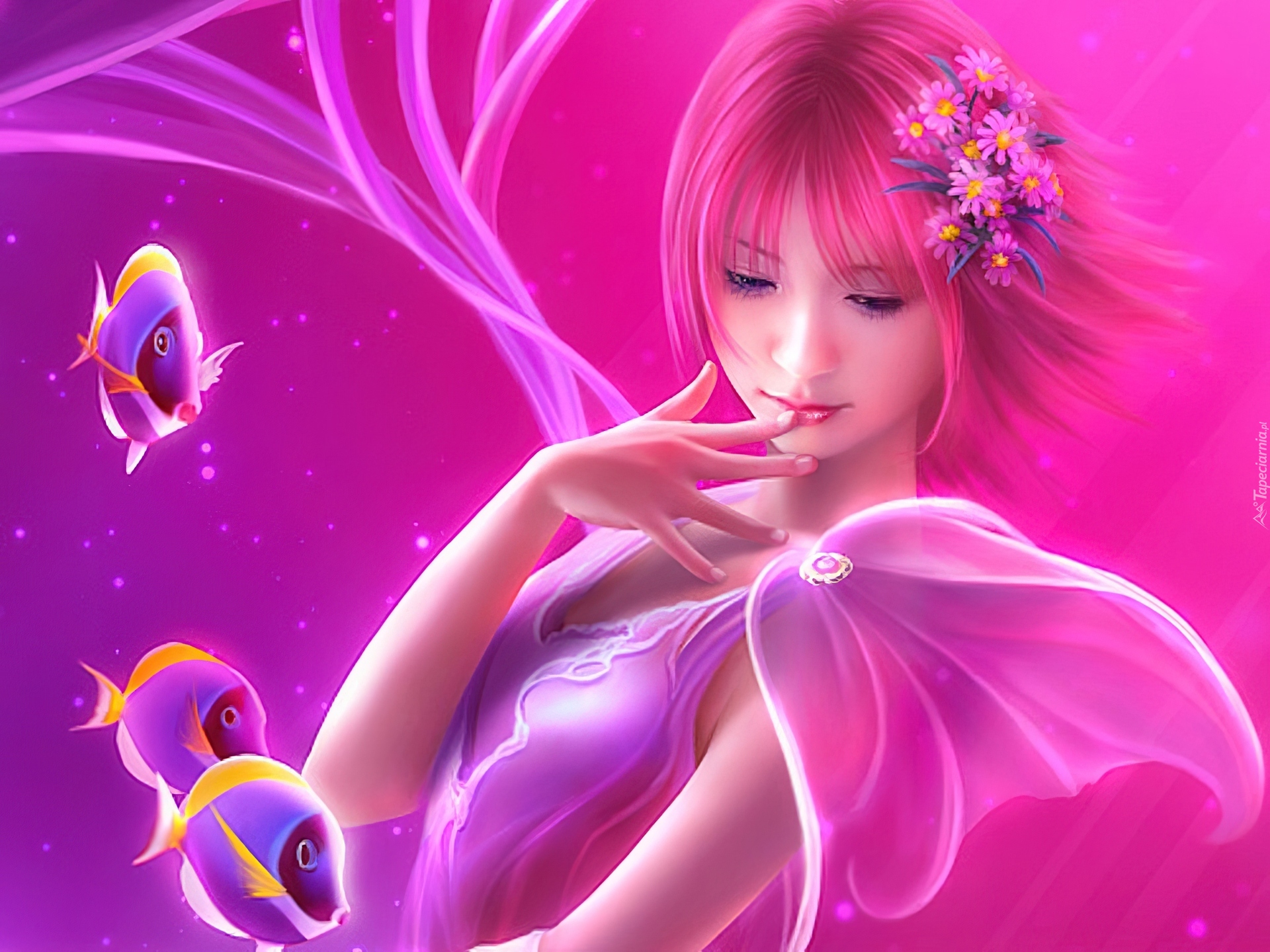 Edytor tapety: Dziewczyna, Ręka, Rybki