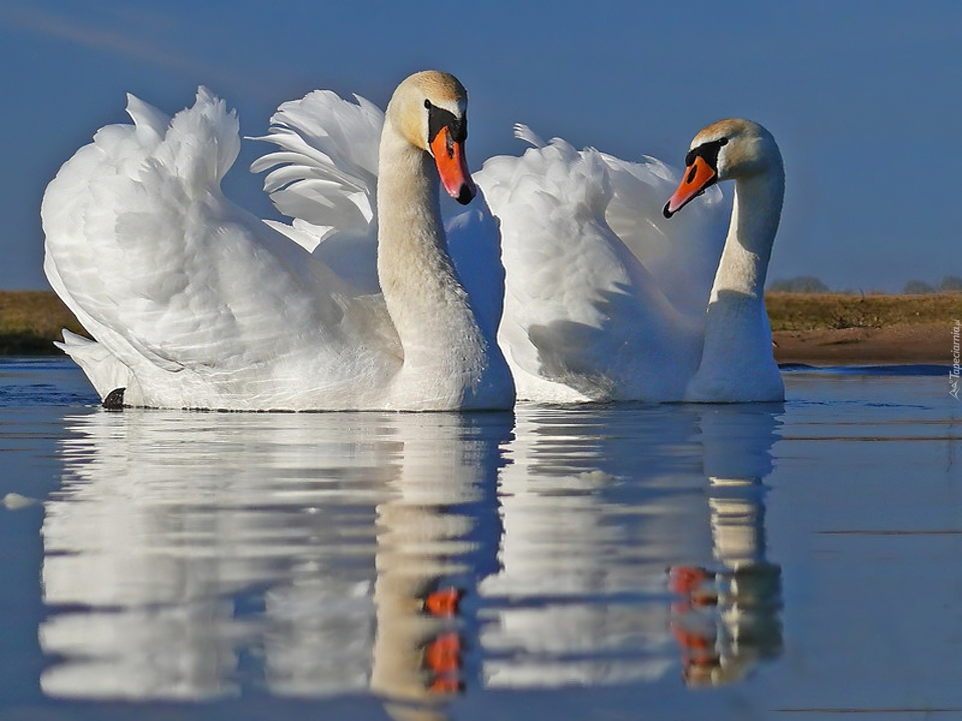 Edytor tapety: Jezioro, Dwa, Łabędzie
