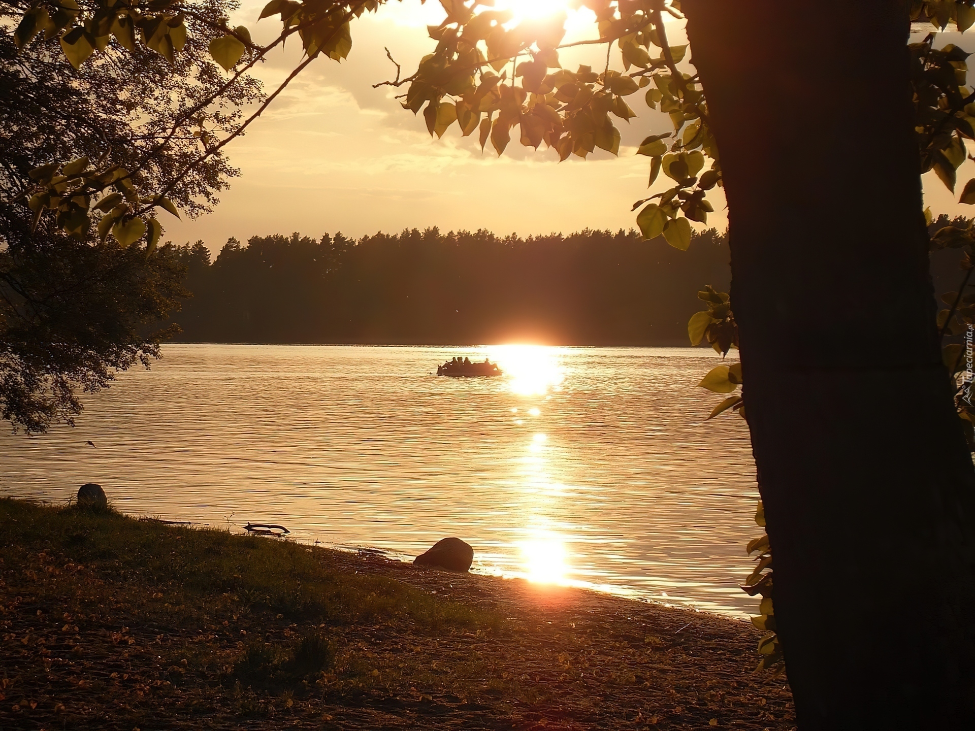 Edytor tapety: Zachód, Słońca, Jezioro, Lasy
