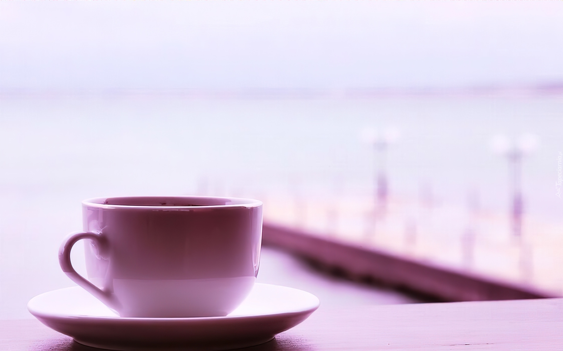 Edytor tapety: Filiżanka, Róż, Molo, Widok