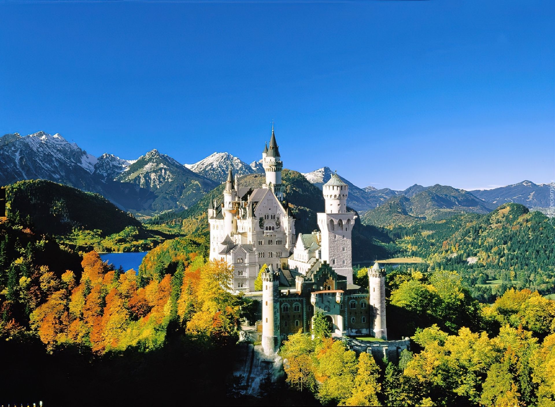 Edytor tapety: Niemcy, Zamek Neuschwanstein, Jesień, Lasy, Góry