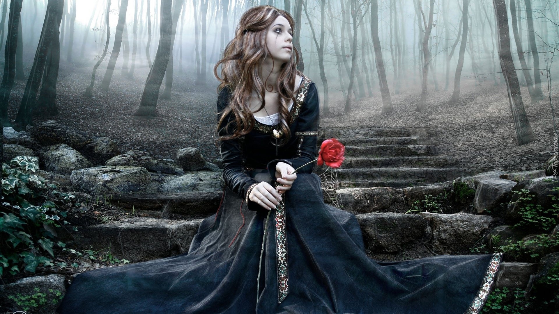 Edytor tapety: Schody, Zapłakana, Kobieta, Róża