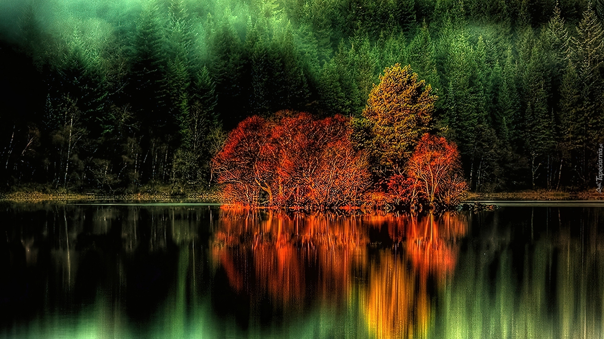 Edytor tapety: Drzewa, Jezioro, Jesień