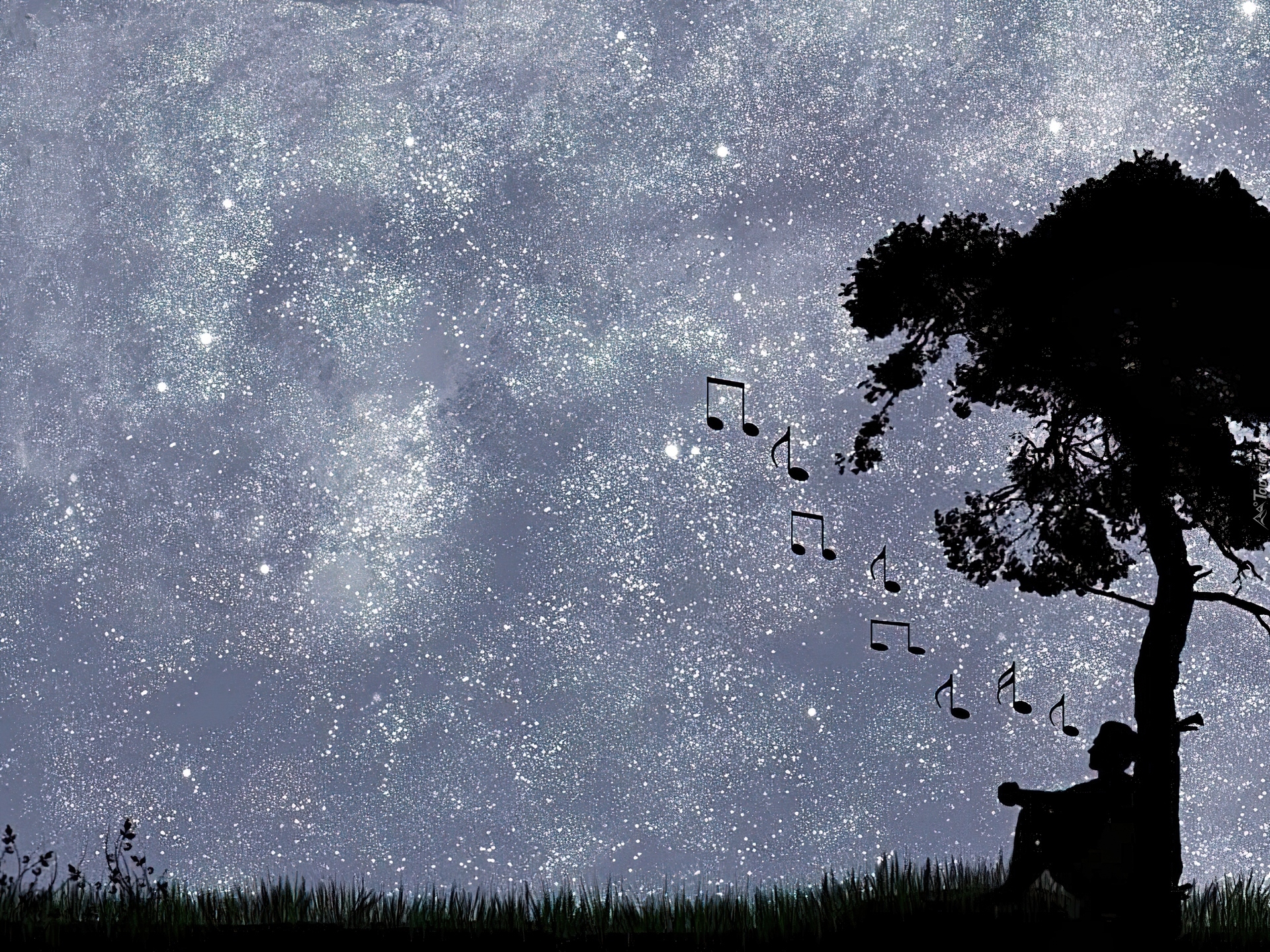 Edytor tapety: Niebo, Gwiazdy, Drzewo, Nuty