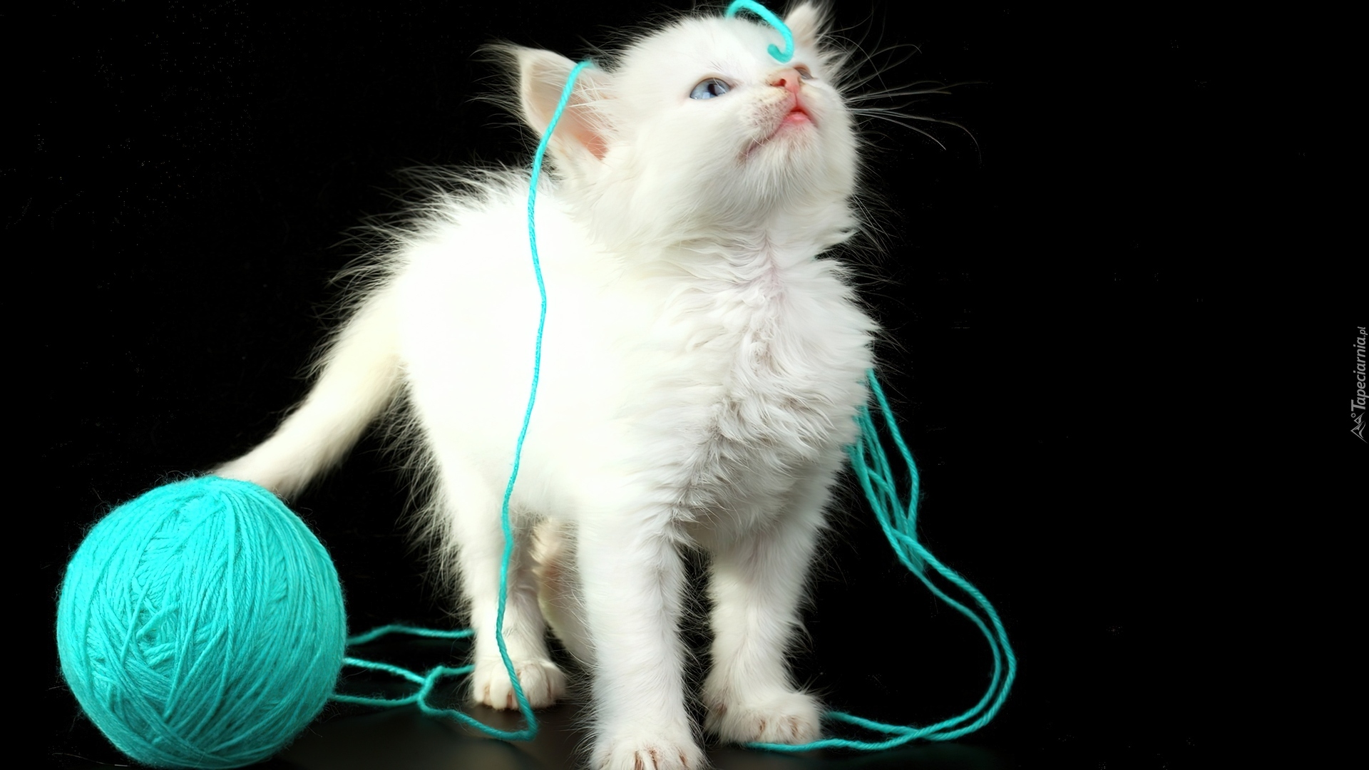 Edytor tapety: Kotek, Biały, Kulka, Włóczki