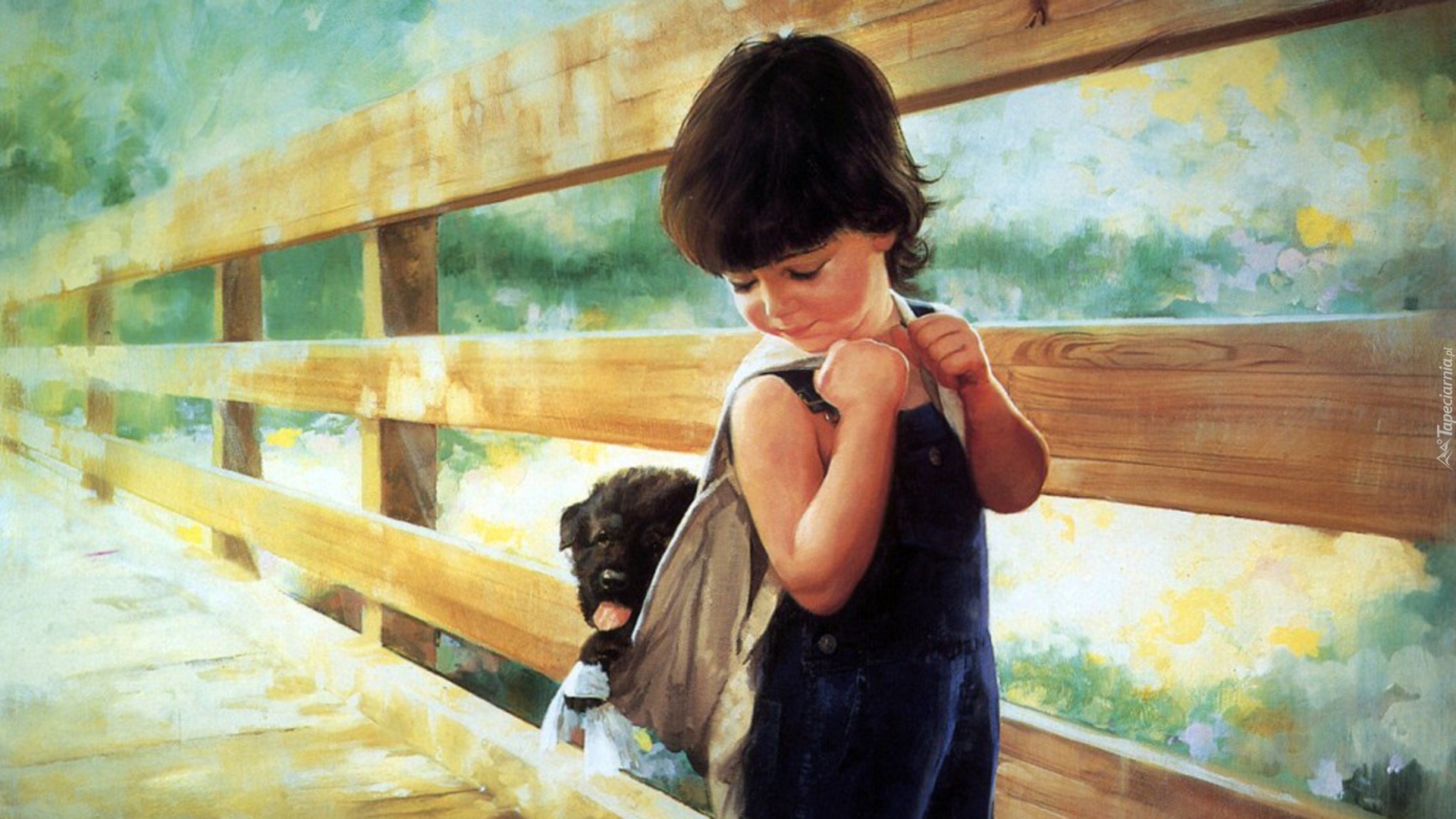 Edytor tapety: Chłopczyk, Pies, Mostek, Reprodukcja