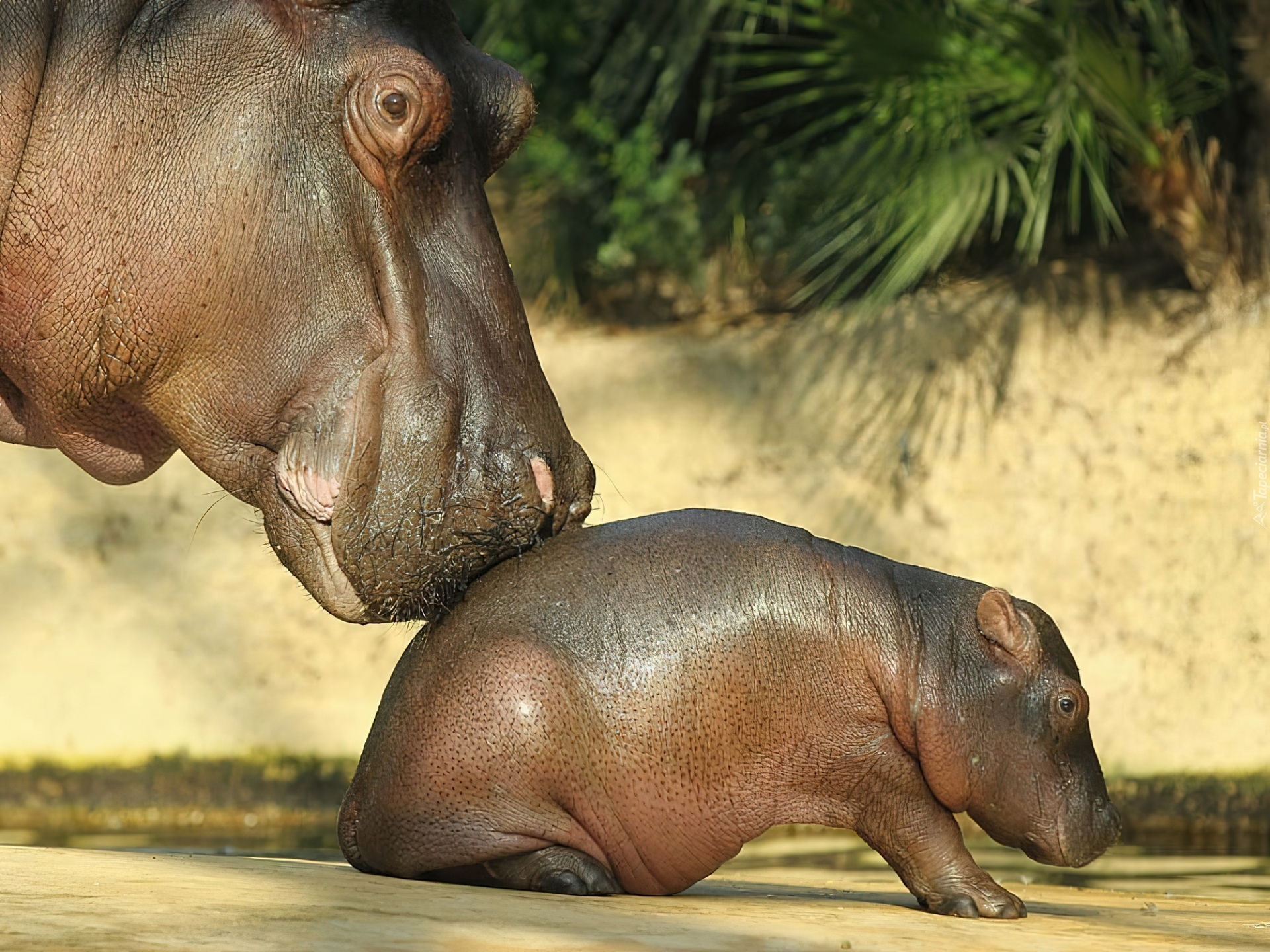 Edytor tapety: Mama, Hipopotam, Małe, Pierwszy, Krok