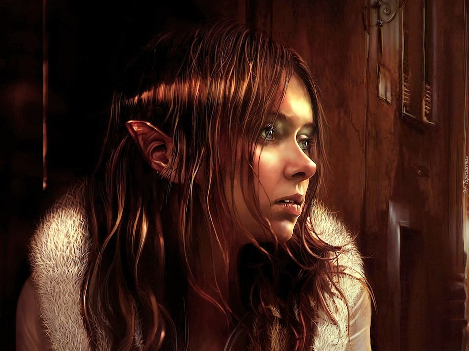 Edytor tapety: Zamyślona, Kobieta, Elf