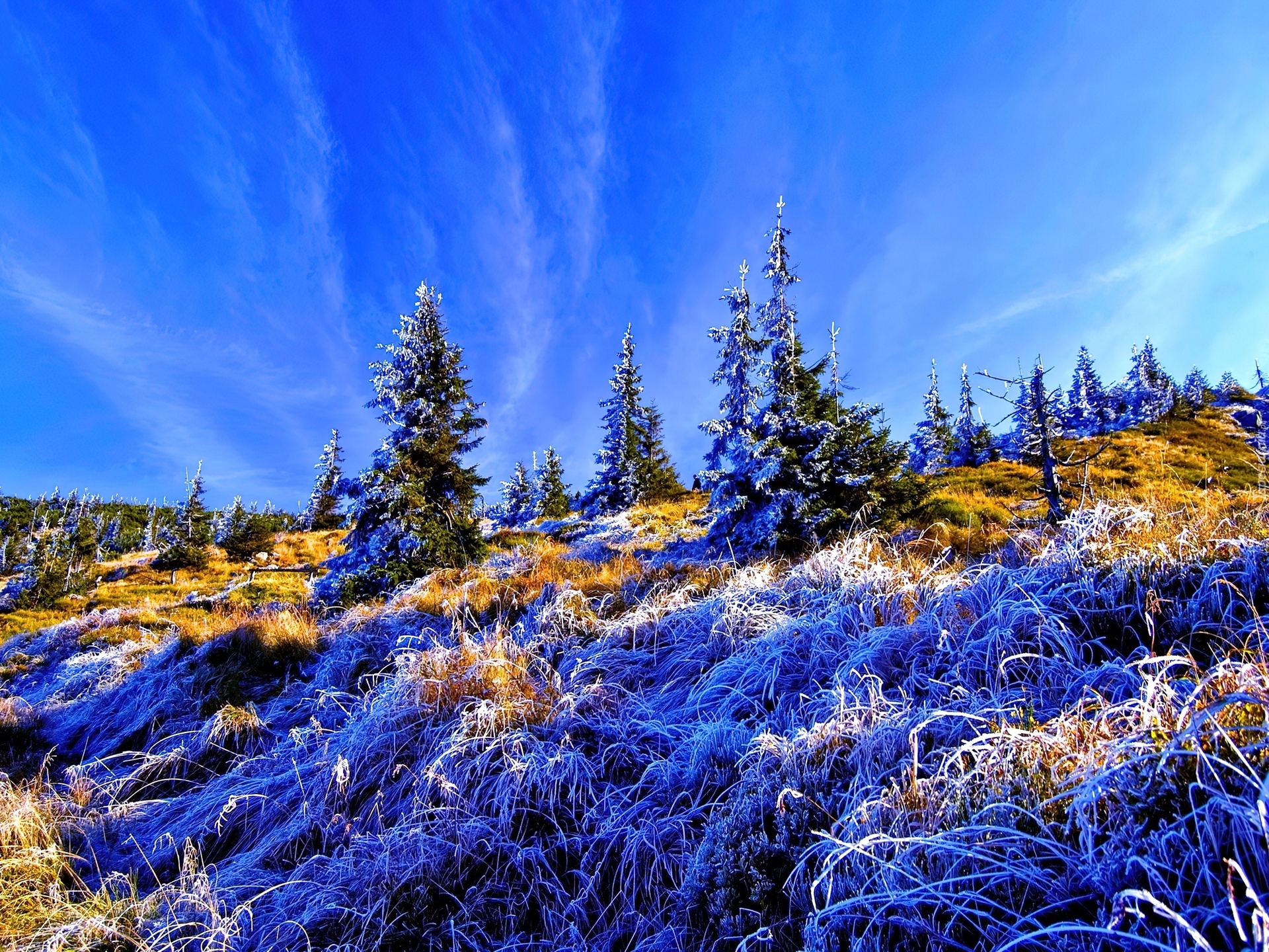 Edytor tapety: Choinki, Trawa, Szron