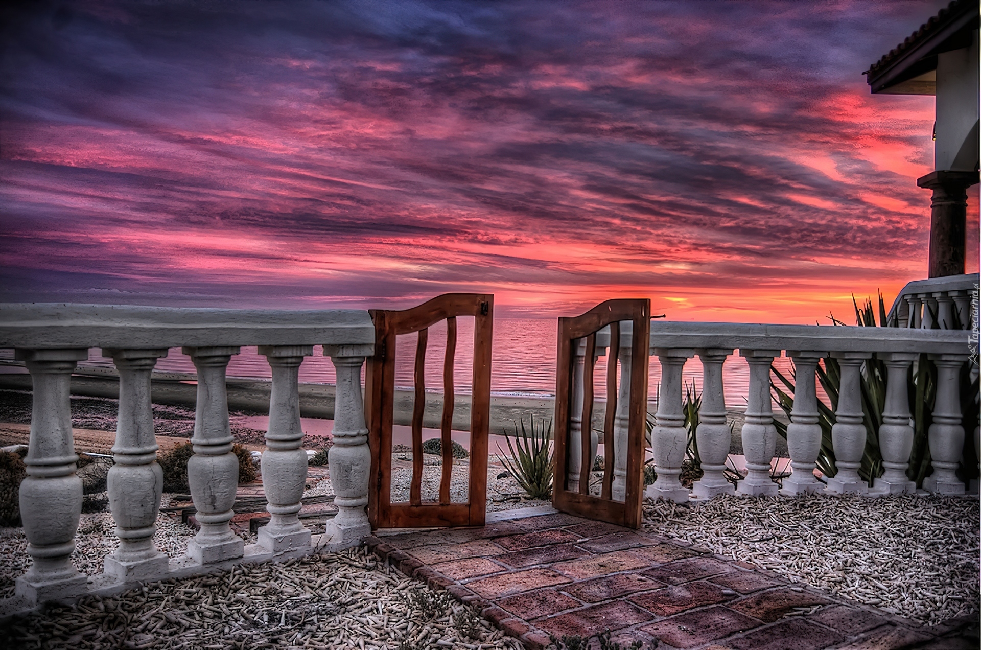 Edytor tapety: Plaża, Zachód, Słońca, Morze, Taras