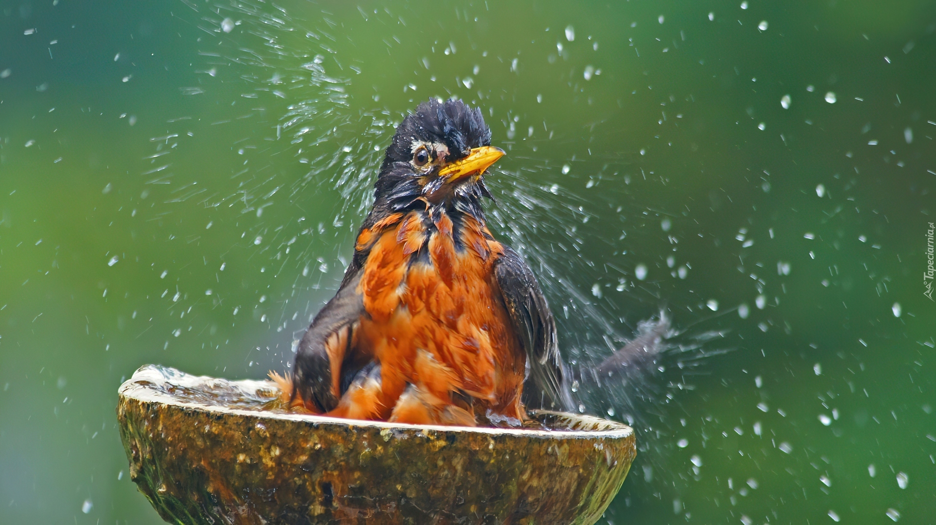Edytor tapety: Ptaszek, Krople, Wody, Kapiel