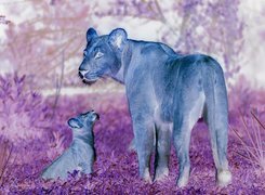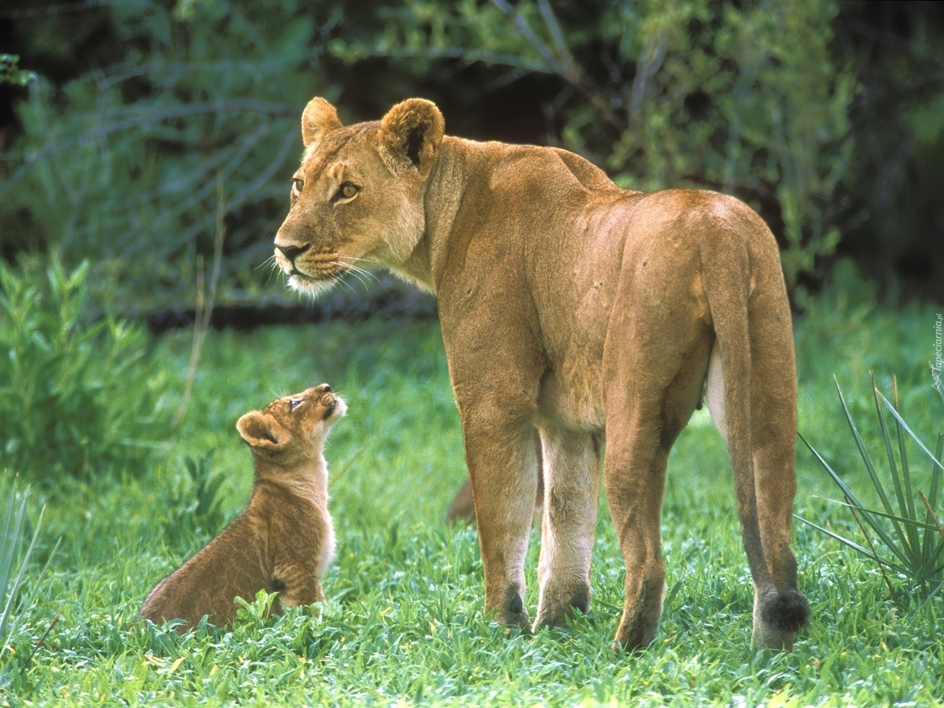 Edytor tapety: Lwica, Lwiątko, Trawa