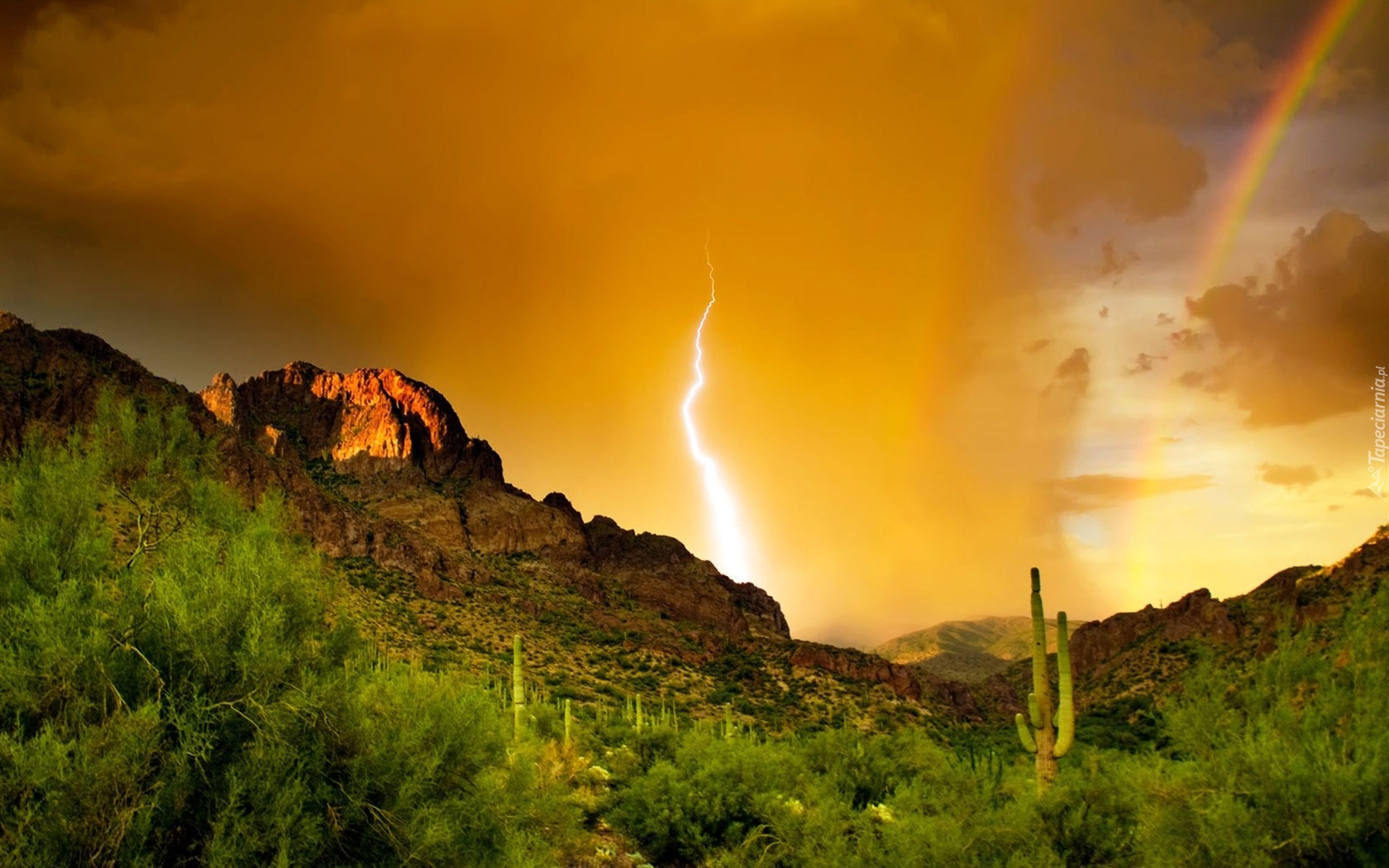 Edytor tapety: Pioruny, Zachód, Słońca, Pustynia
