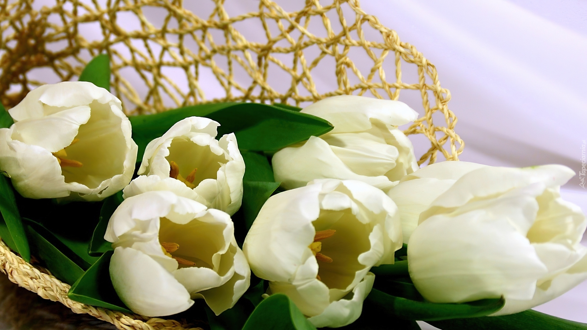 Edytor tapety: Pleciony, Kosz, Białe, Tulipany