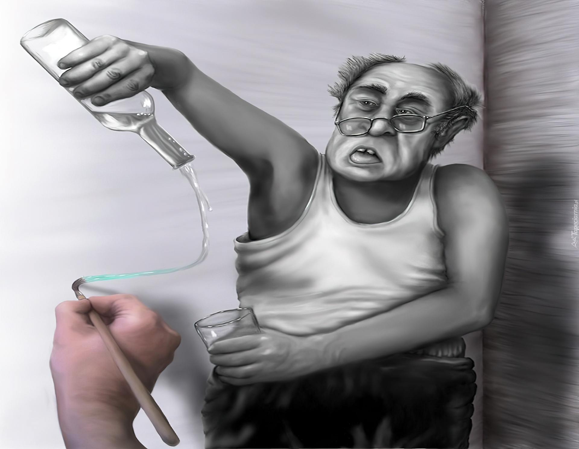 Edytor tapety: Mężczyzna, Butelka, Alkohol, Rysunek