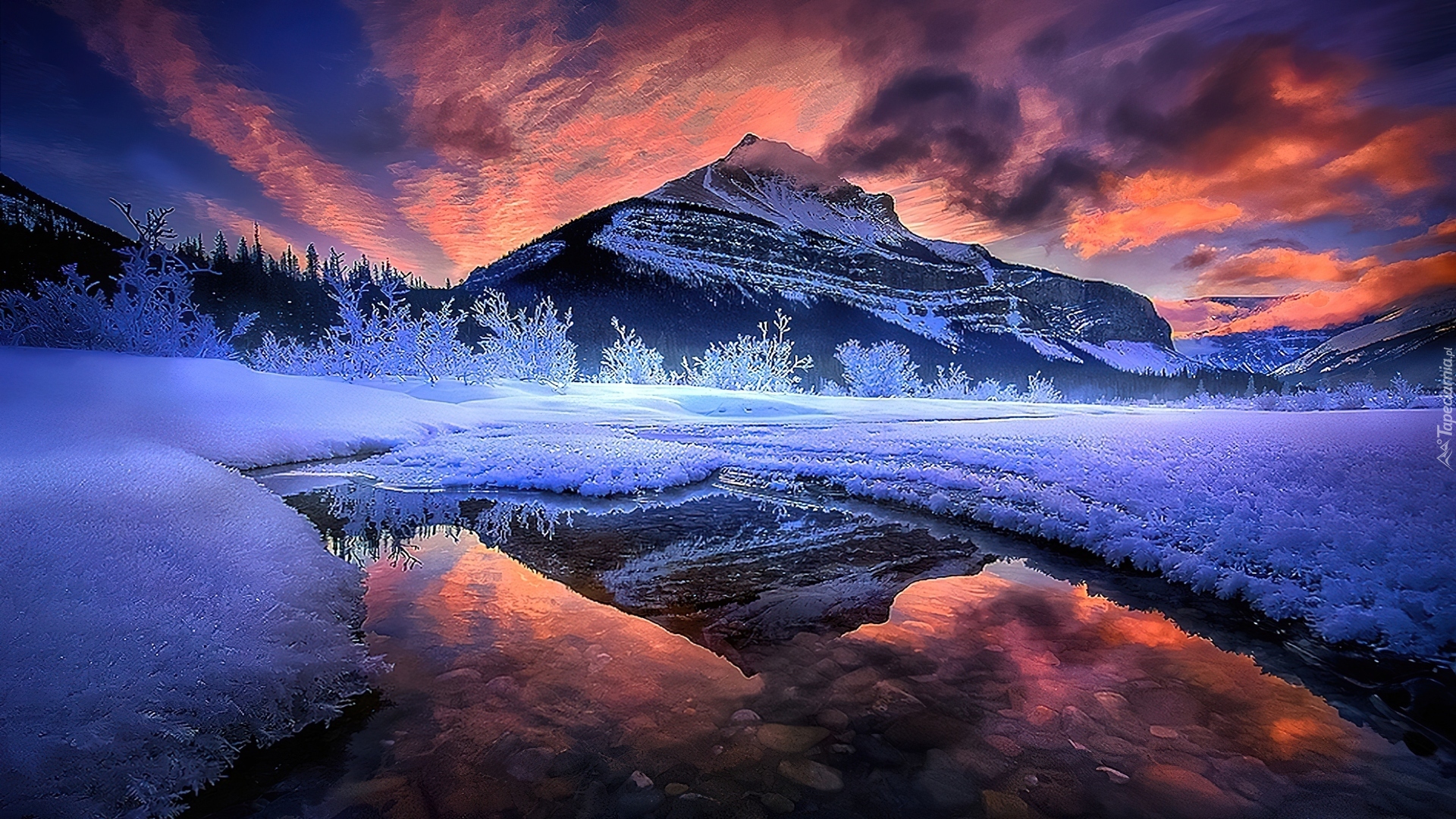 Edytor tapety: Góry, Zima, Woda
