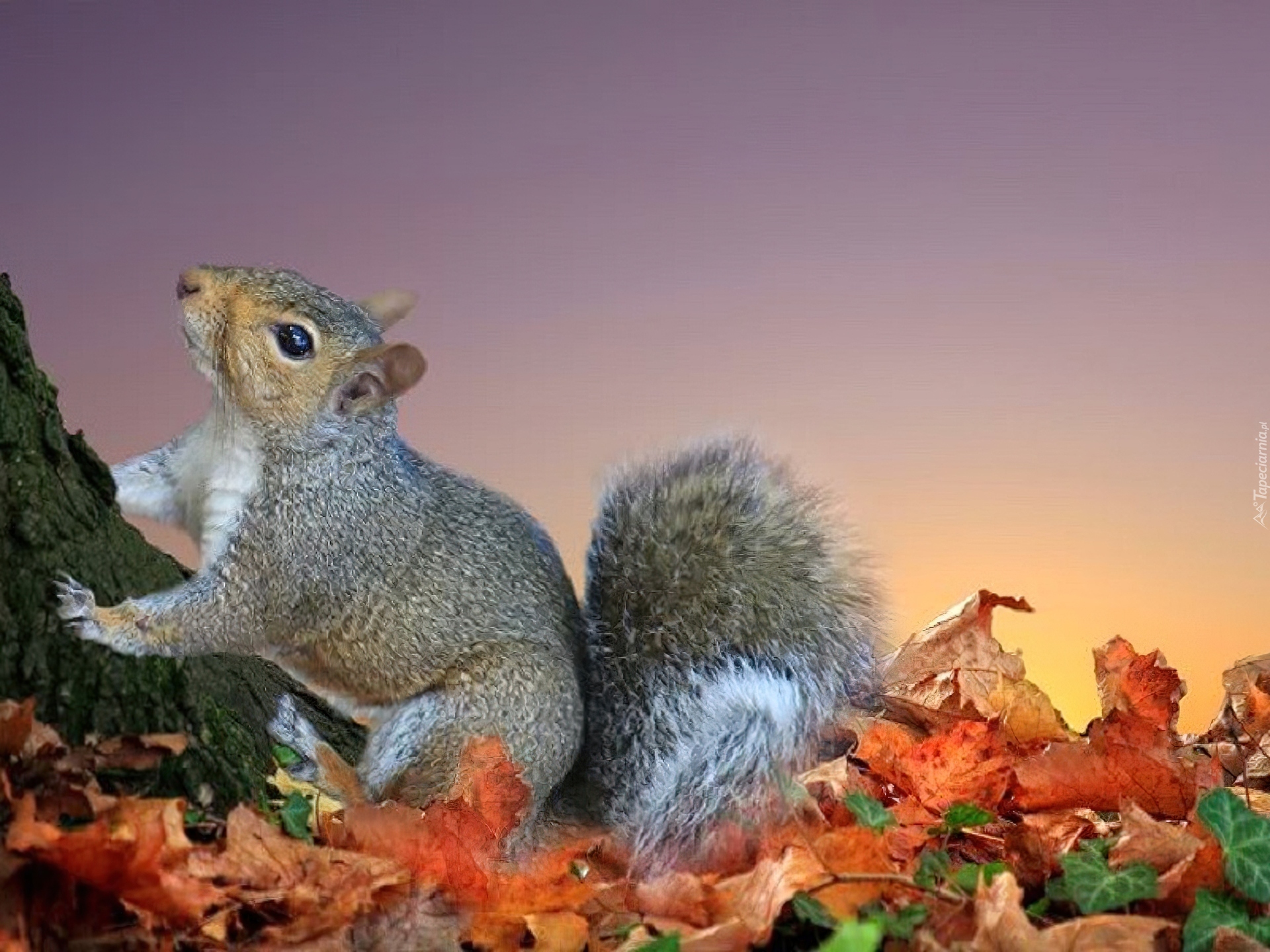 Edytor tapety: Wiewiórka, Liście