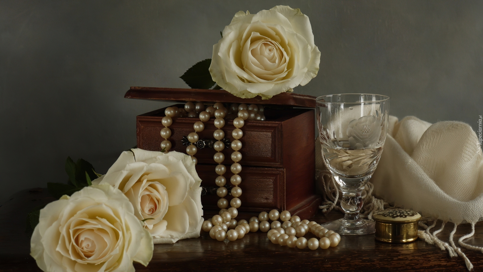 Edytor tapety: Róże, Perły, Szkatułka, Szal
