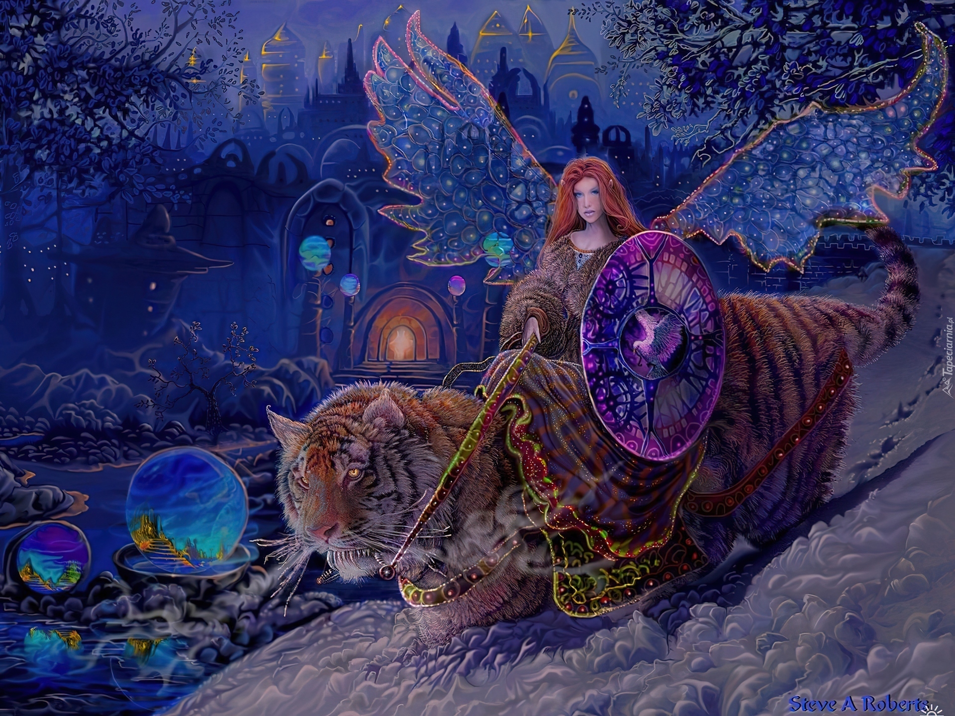 Edytor tapety: Kobieta, Motyl, Tygrys, Tarcza