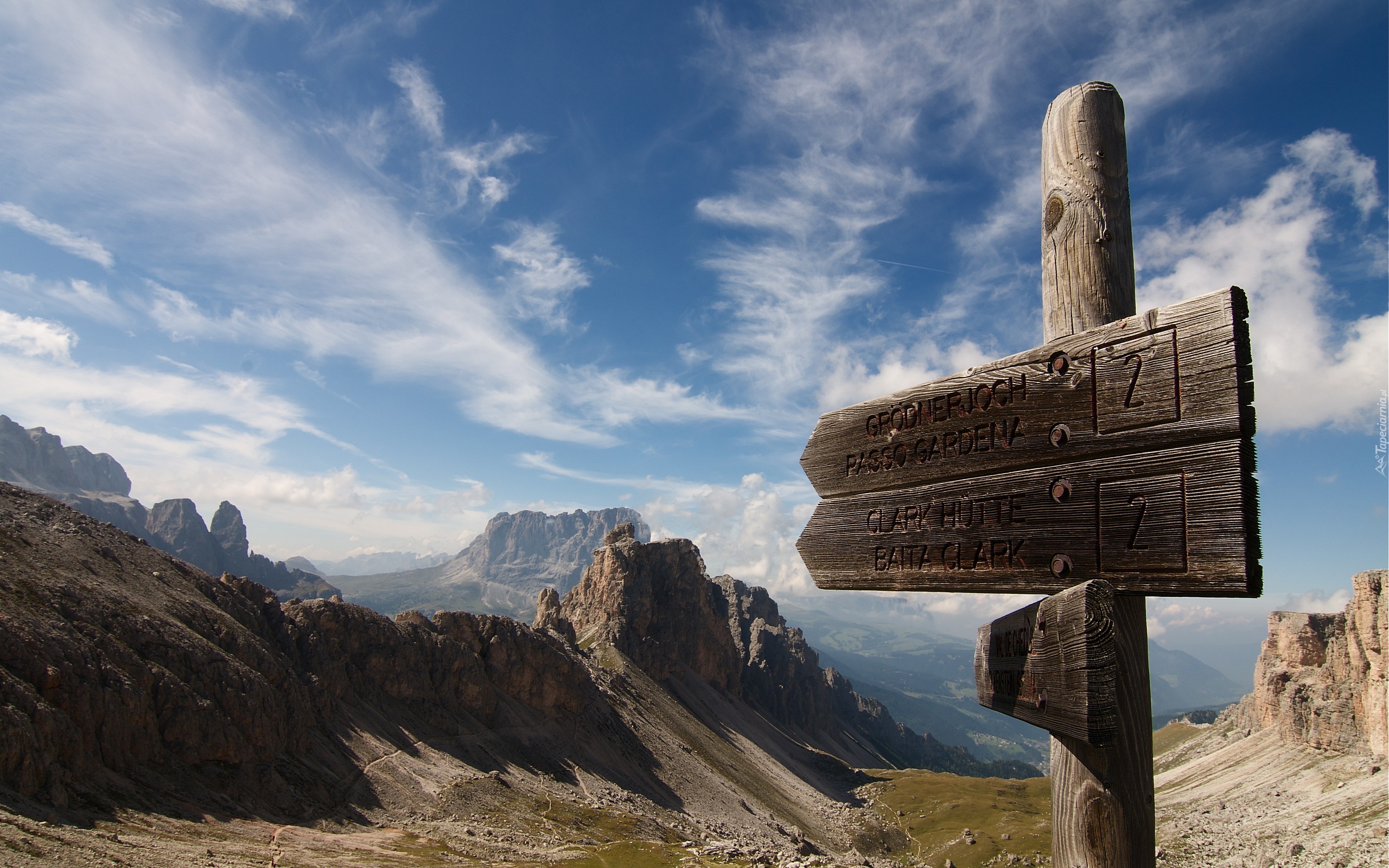 Edytor tapety: Chmury, Góry, Drogowskaz