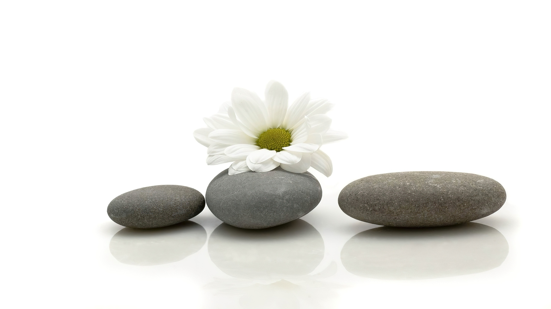 Edytor tapety: Biała, Margarytka, Kamienie