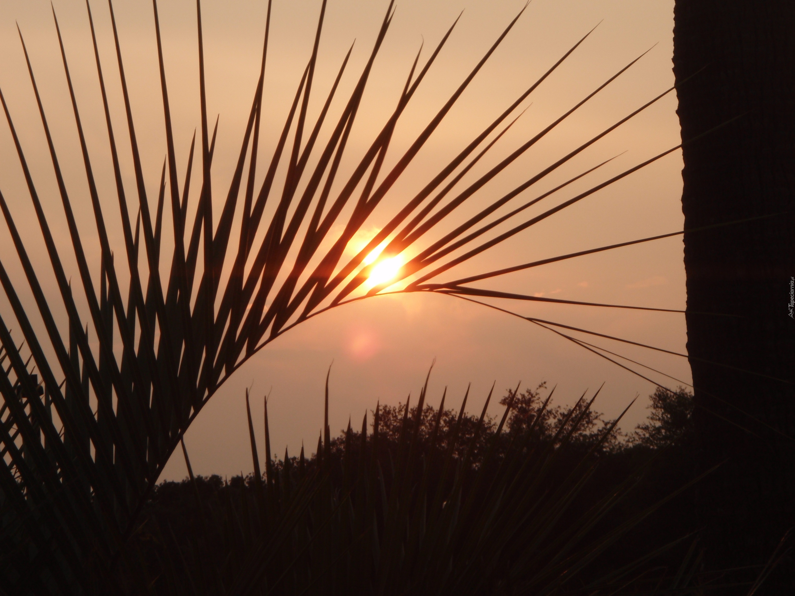 Edytor tapety: Zachód, Słońca, Liście, Palmy