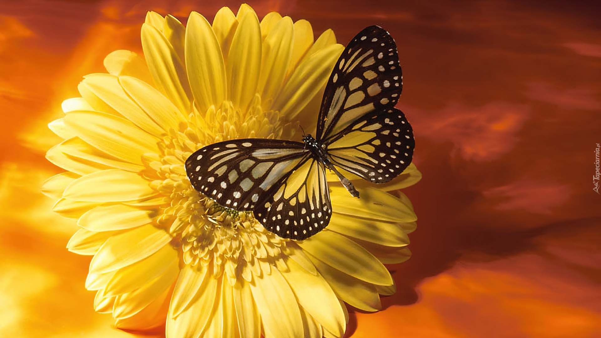 Edytor tapety: Zółty, Kwiat, Motyl