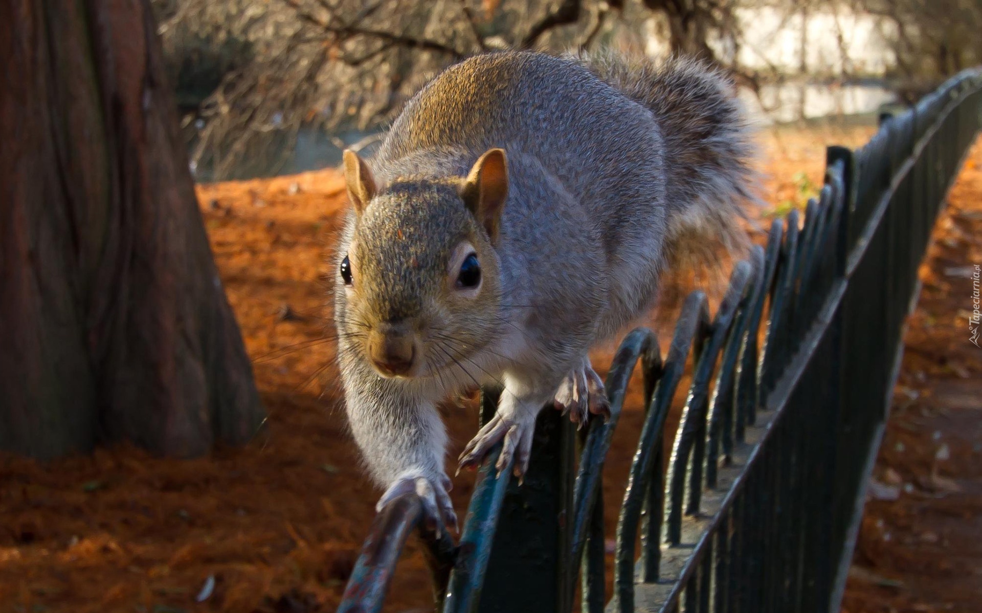 Edytor tapety: Wiewiórka, Ogrodzenie, Park, Pień