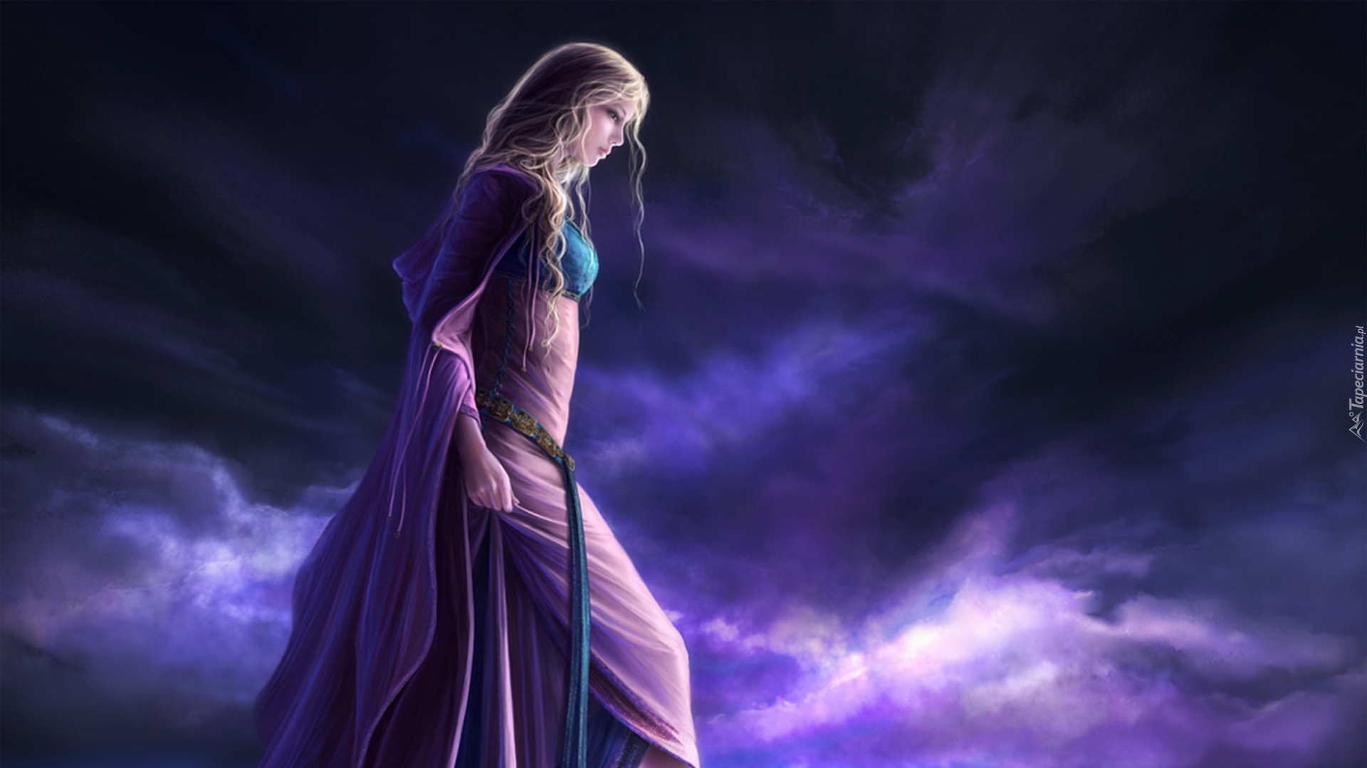 Edytor tapety: Długowłosa, Dziewczyna, Peleryna, Chmury