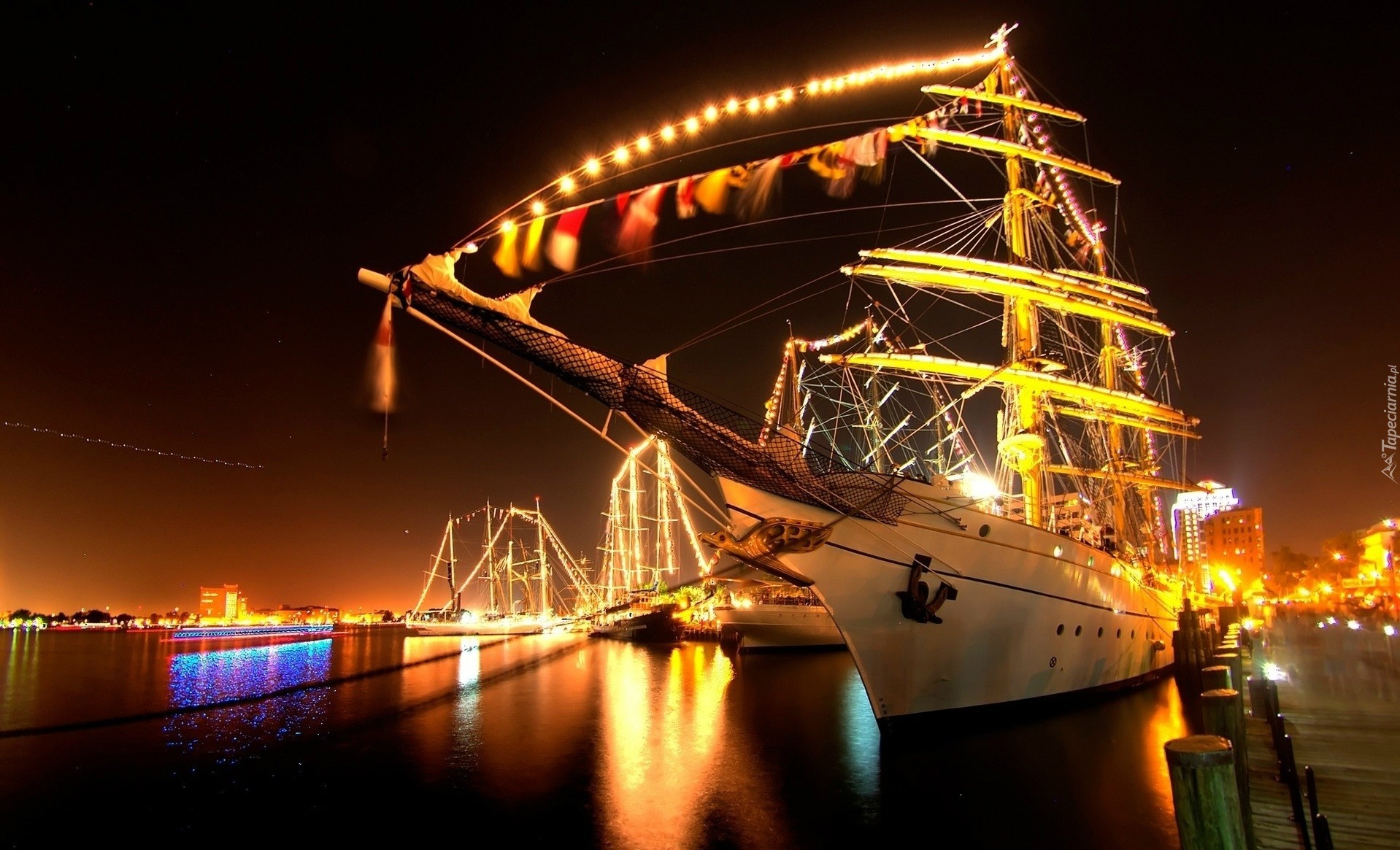 Edytor tapety: Oświetlony, Żaglowiec, Woda, Maszty
