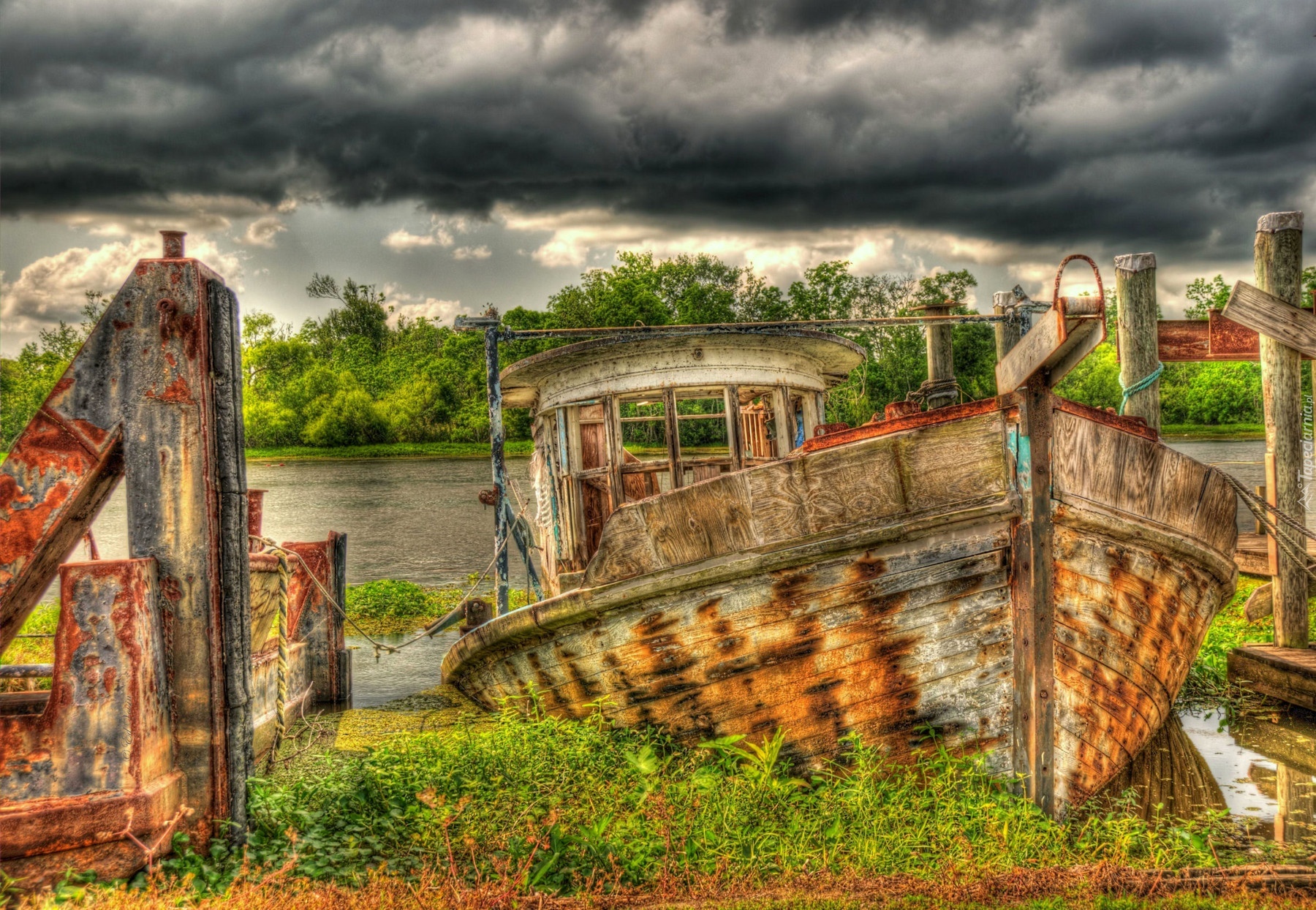 Edytor tapety: Chmury, Rzeka, Stara, Łajba