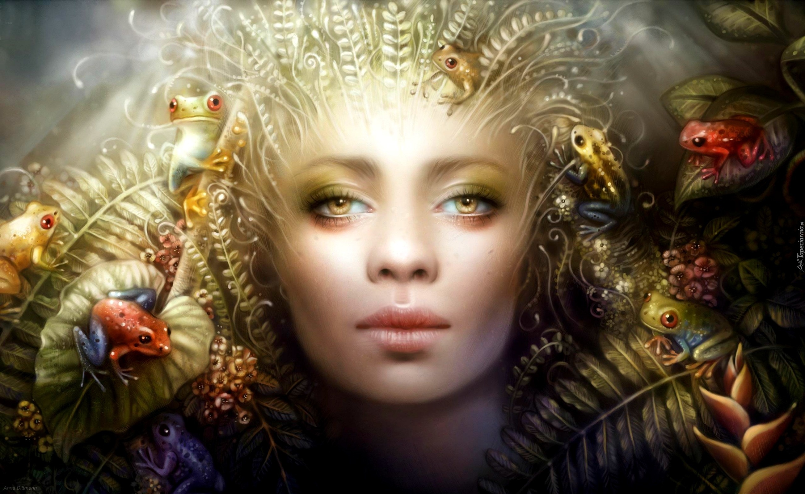 Edytor tapety: Kobieta, Spojrzenie, Żabki