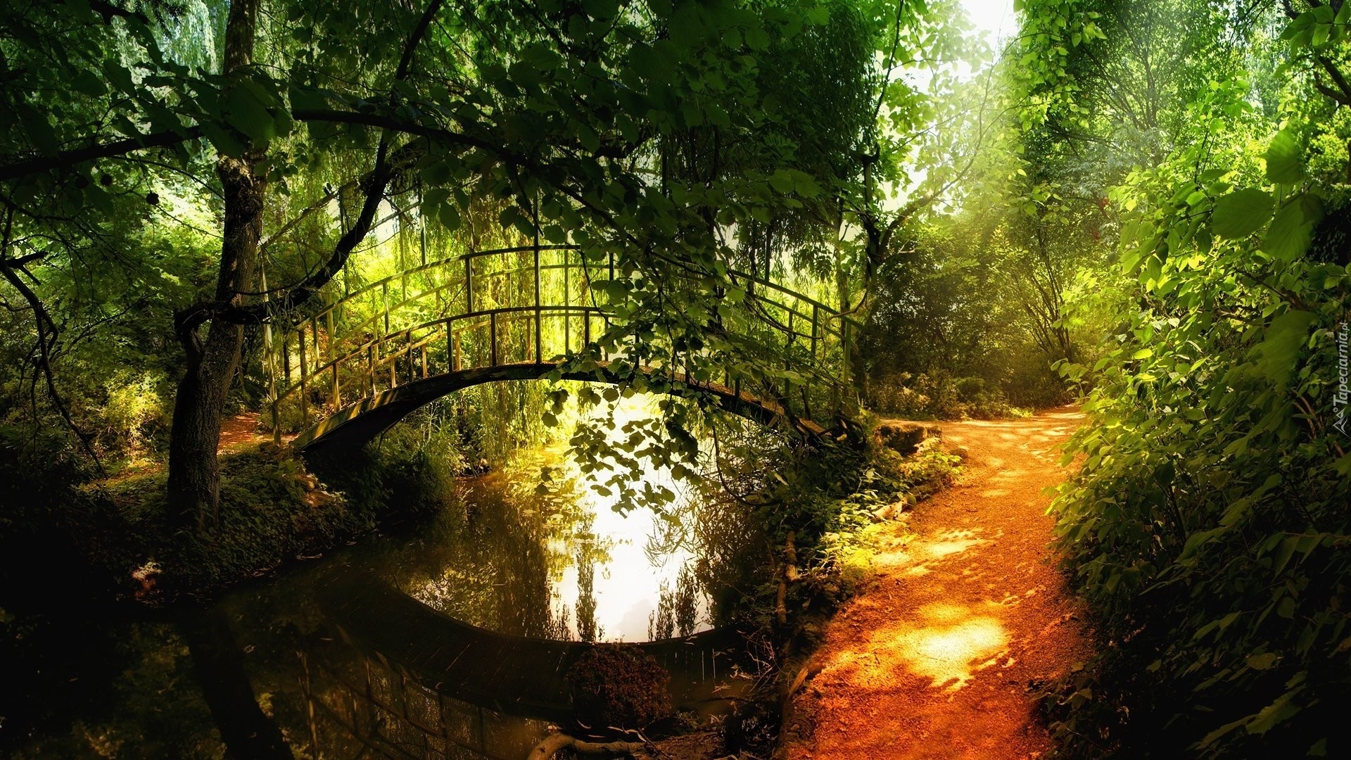 Edytor tapety: Rzeczka, Mostek, Drzewa