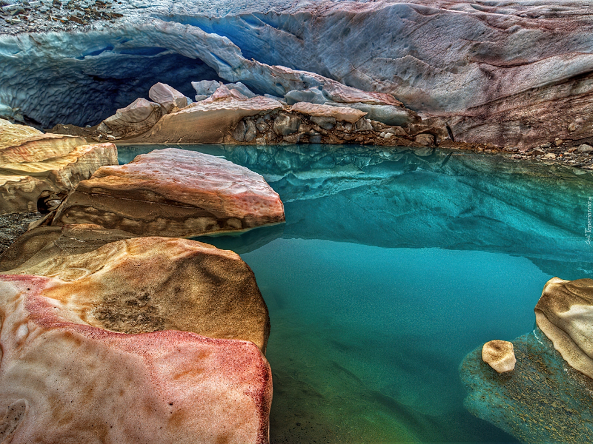 Edytor tapety: Kolorowe, Skały, Jeziorko