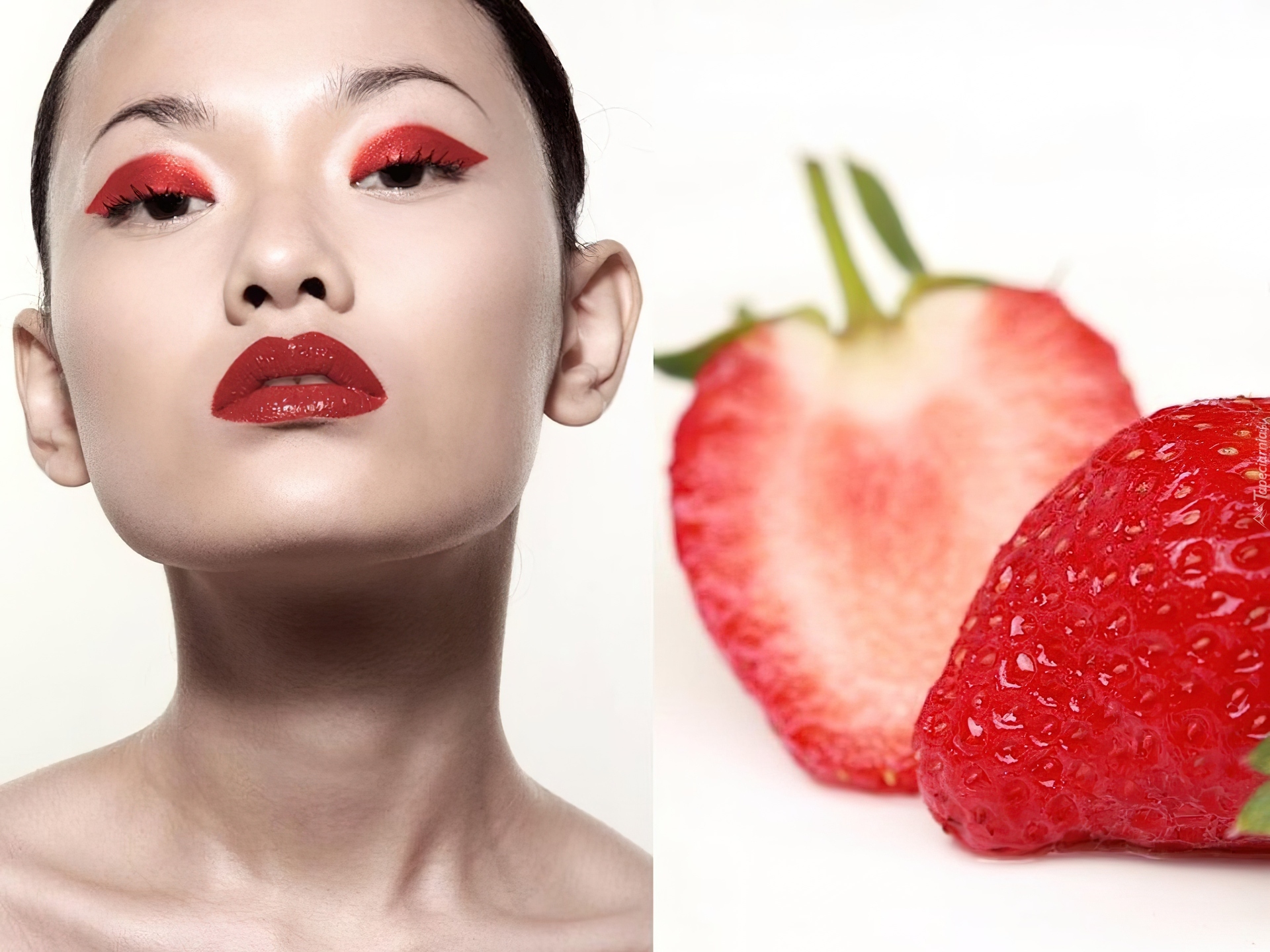 Edytor tapety: Kobieta, Makijaż, Truskawki