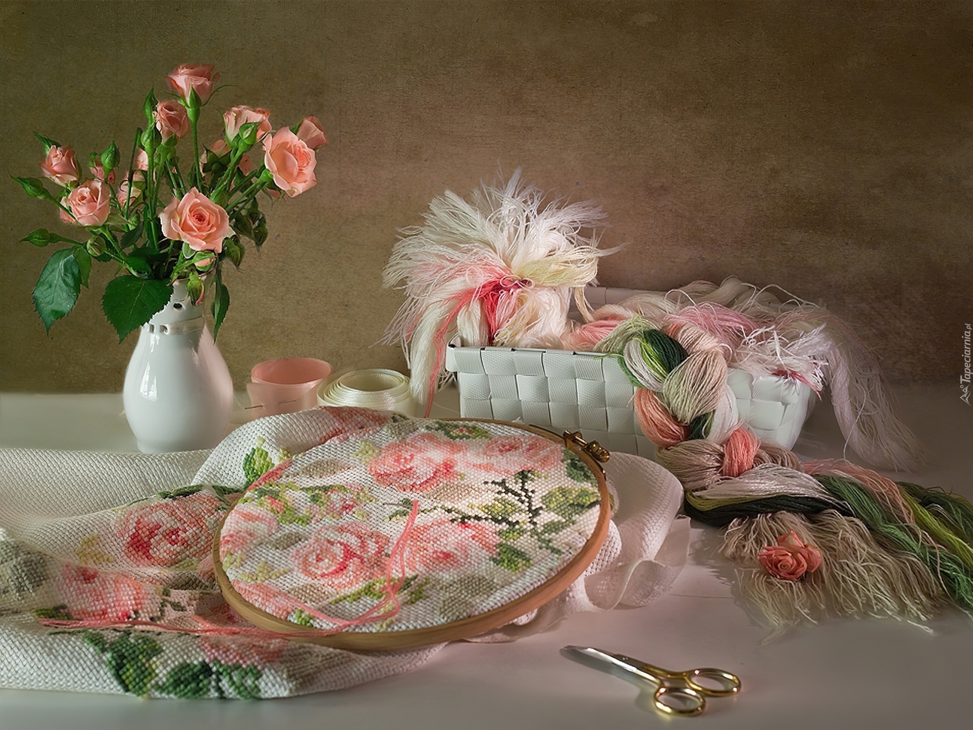 Edytor tapety: Róże, Nici, Ręczne, Robótki