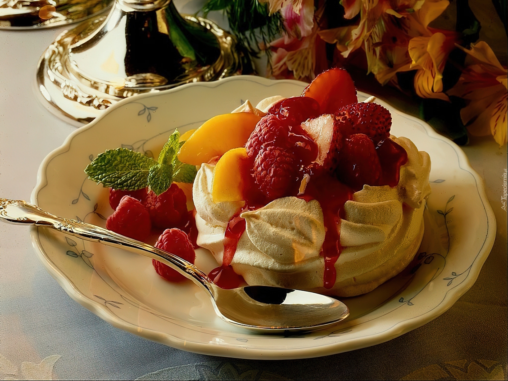 Edytor tapety: Beza, Śmietana, Owoce