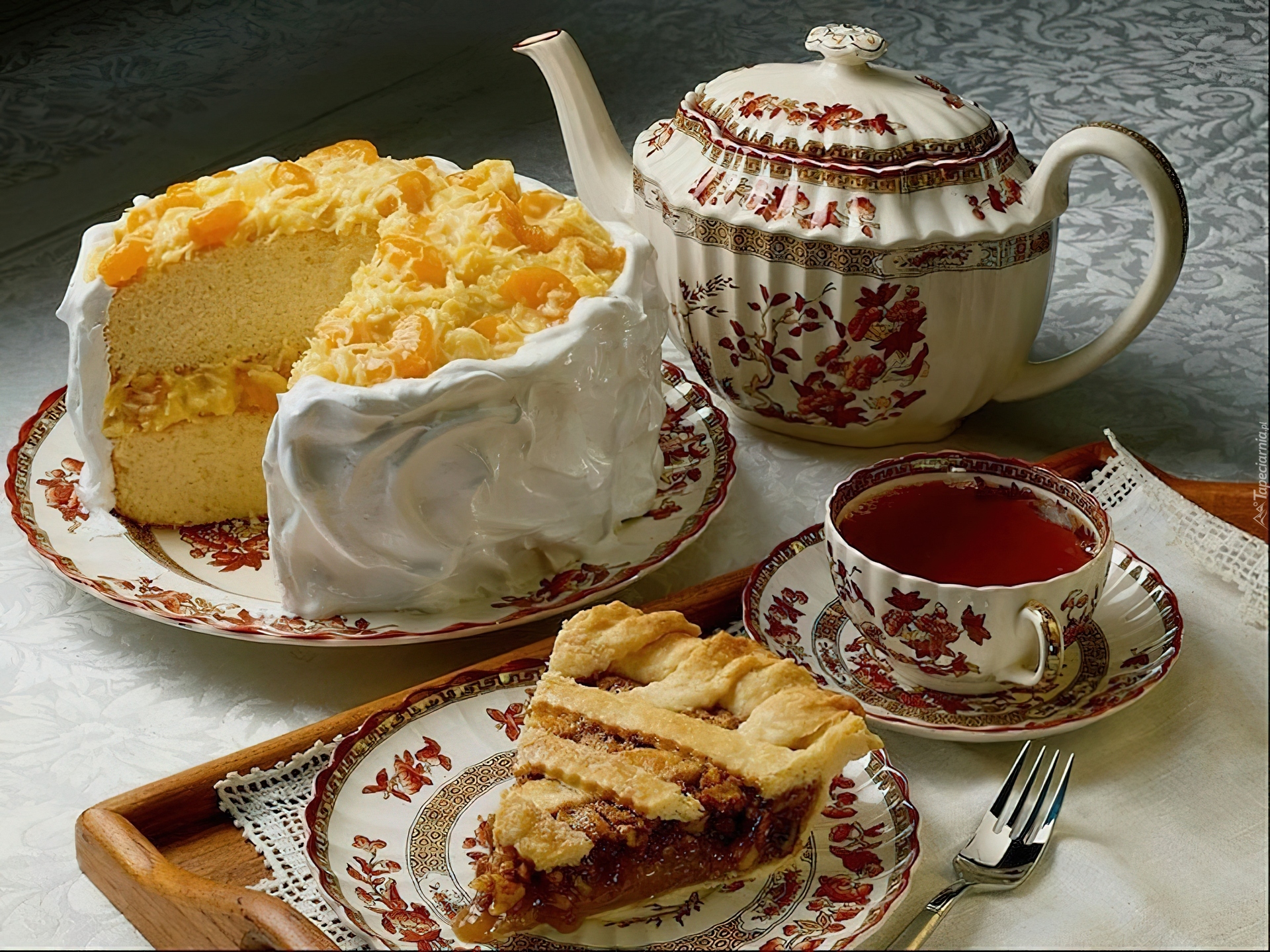 Edytor tapety: Tort, Herbata, Zastawa, Taca