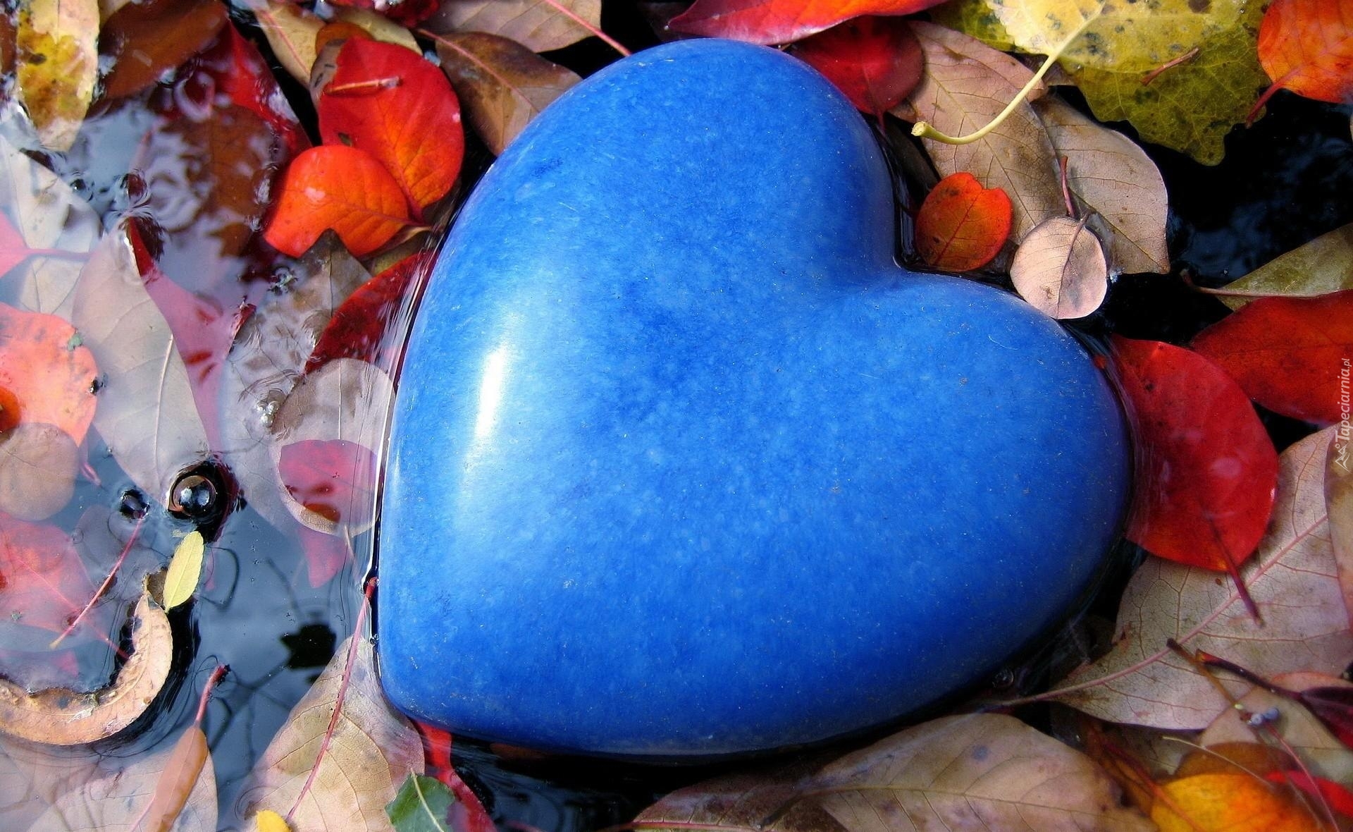 Edytor tapety: Liście, Niebieskie, Serce